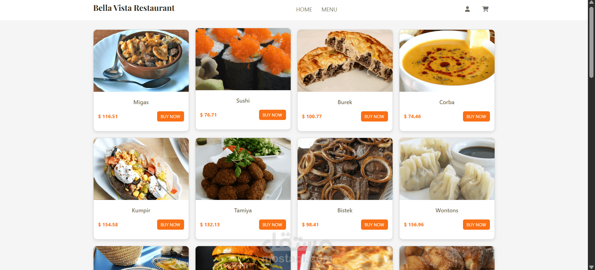 هوموقع ويب حديث مطوّر باستخدام React.js، بيقدّم تجربة تفاعلية للمستخدمين داخل مطعم إلكتروني عصري