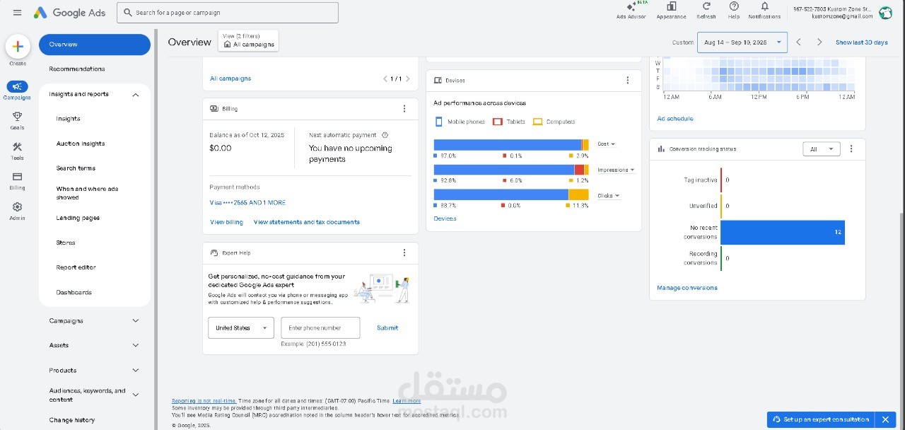 إنشاء وإدارة الحملات الإعلانية باحترافية (بحث – عرض – محلية – فيديو).