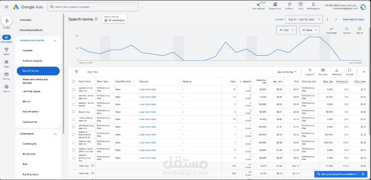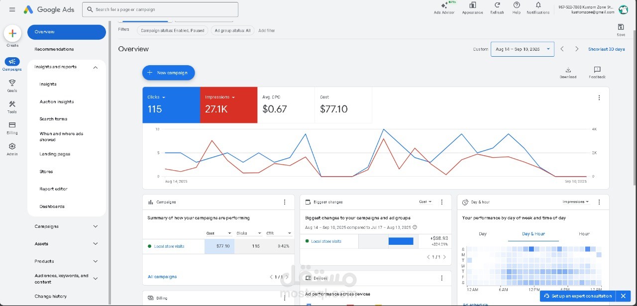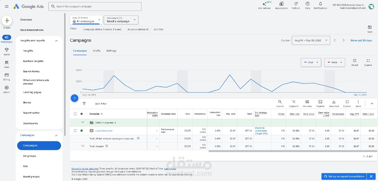 تم تنفيذ حملة إعلانية احترافية عبر منصة Google Ads بهدف زيادة عدد زيارات المتجر الفعلي واستهداف العملاء المحليين القريبين من موقع النشاط التجاري.