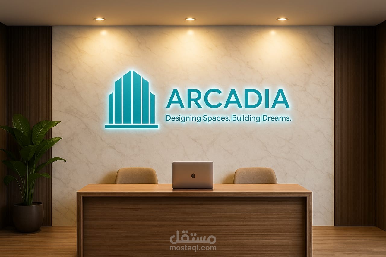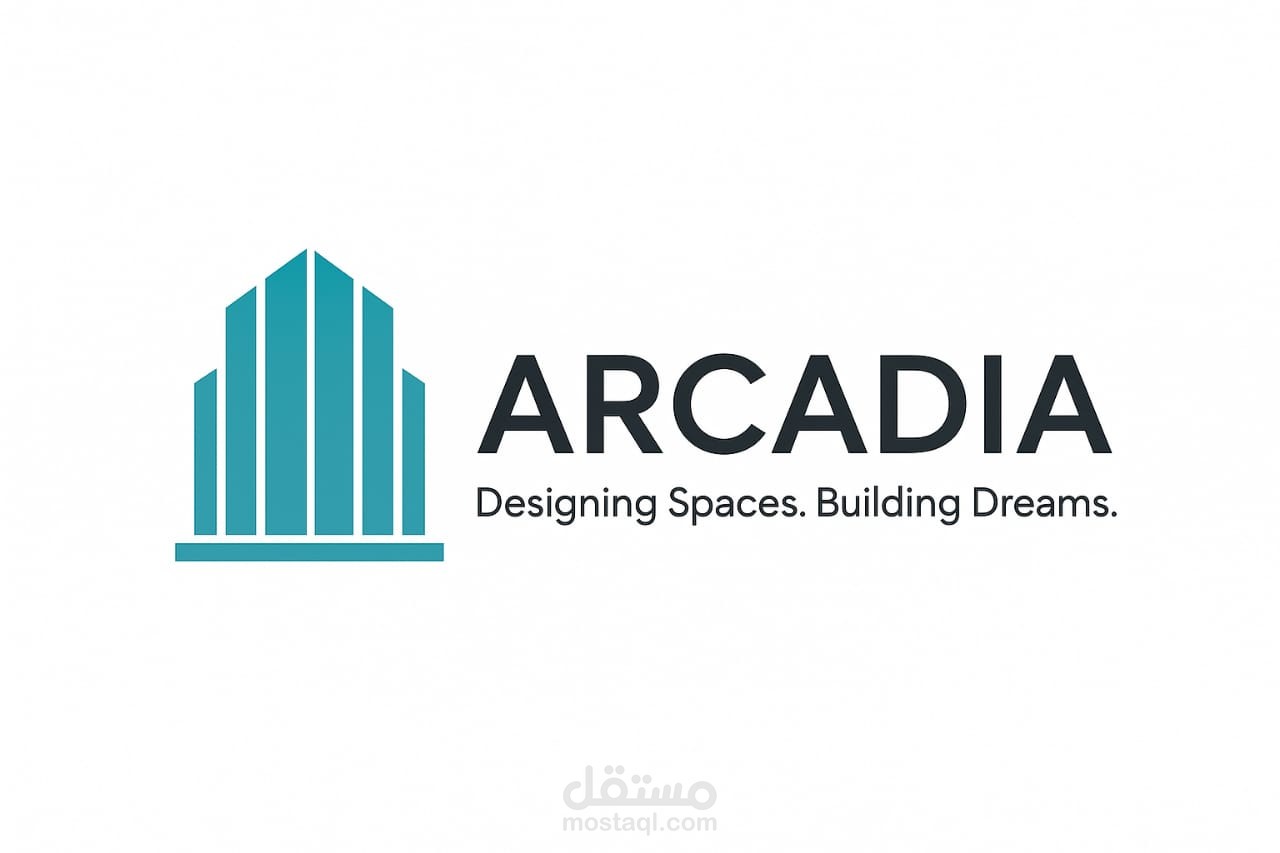 تم تصميم شعار شركة ARCADIA ليعكس هوية عصرية راقية لشركة تعمل في مجالات العقارات والهندسة المعمارية والبناء.
