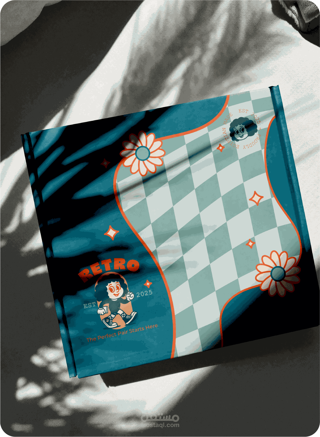 يشمل تصميم الشعارات، الألوان، الأنماط، والعناصر البصرية التي تعبّر عن أسلوب العلامة التجارية، بالإضافة إلى تنسيق التصاميم بأسلوب عصري مستوحى من الطابع الريترو (Retro Style).