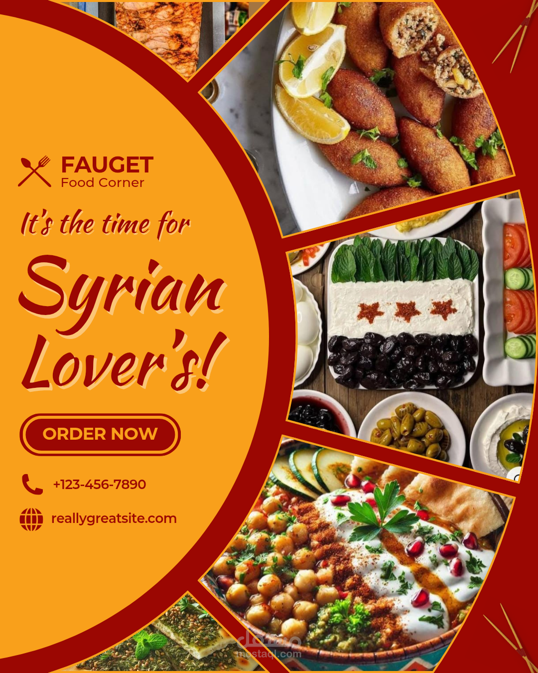 اعلان لمطعم سوري باستخدام canva و الصور من Pinterest