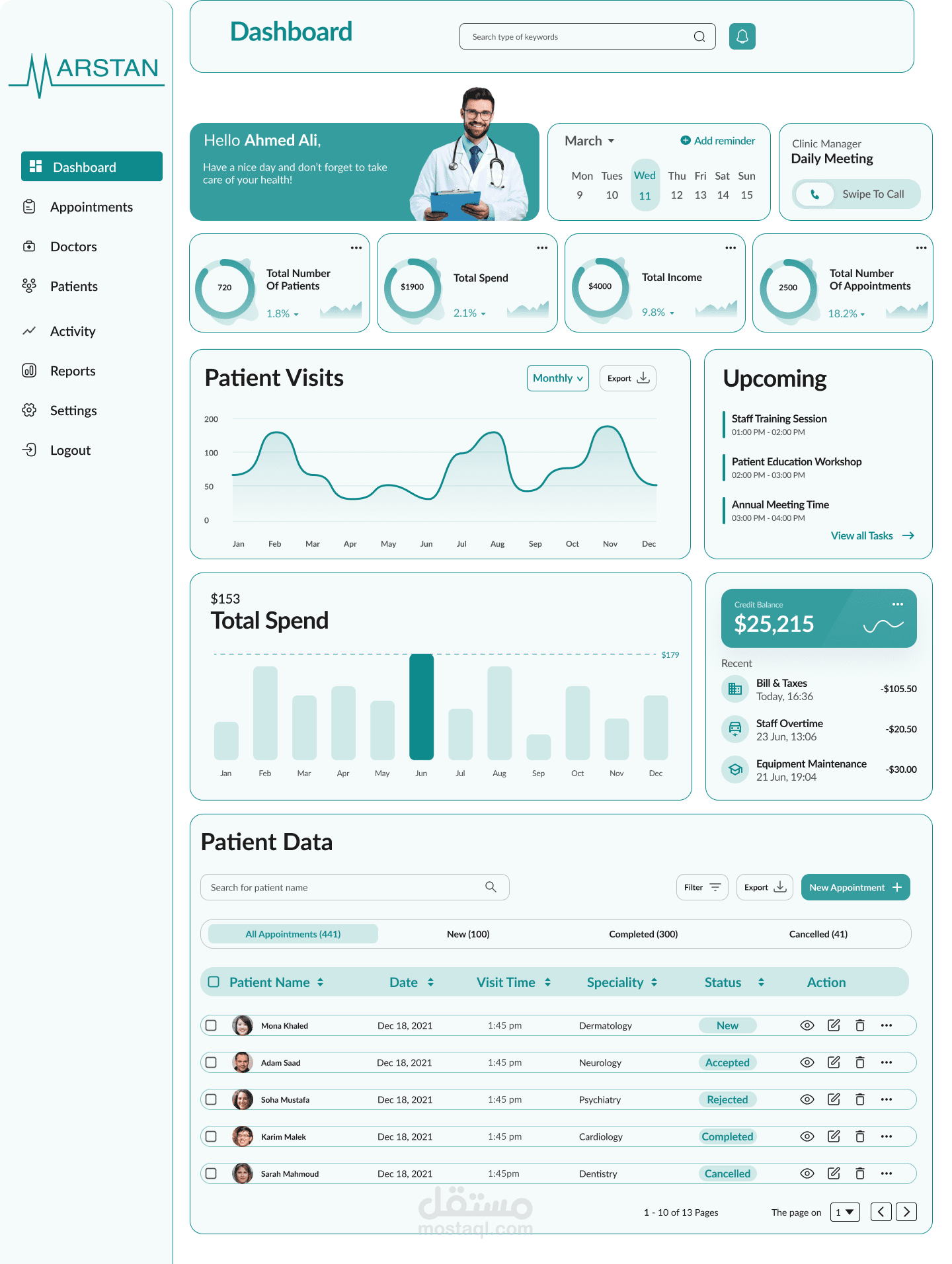 تصميم لوحة معلومات لعيادة طبية