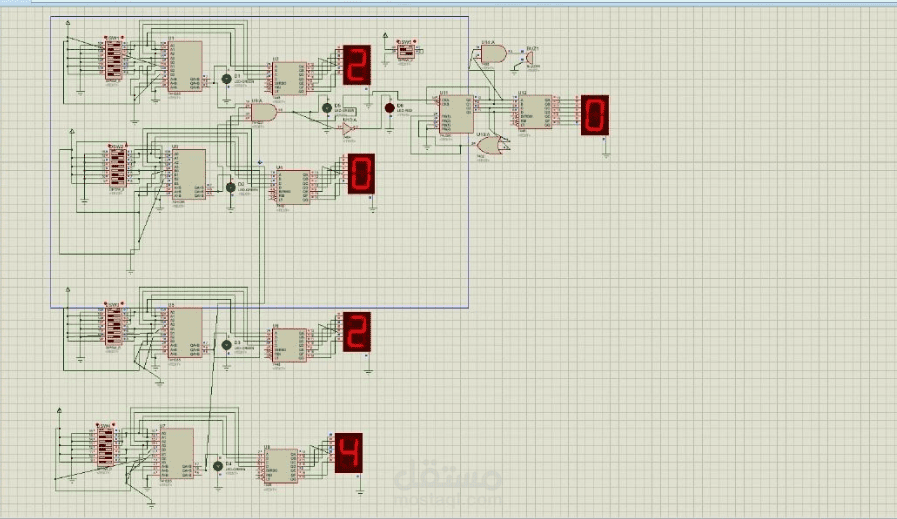 There is a stored password consisting of four numbers, and the user enters four numbers that appear on four parts of a seven-part display screen, if the stored numbers match, the green lights light up, and if they are wrong, the red light light up and the counter starts counting the wrong times up to three times, and after three wrong attempts, the bell rings