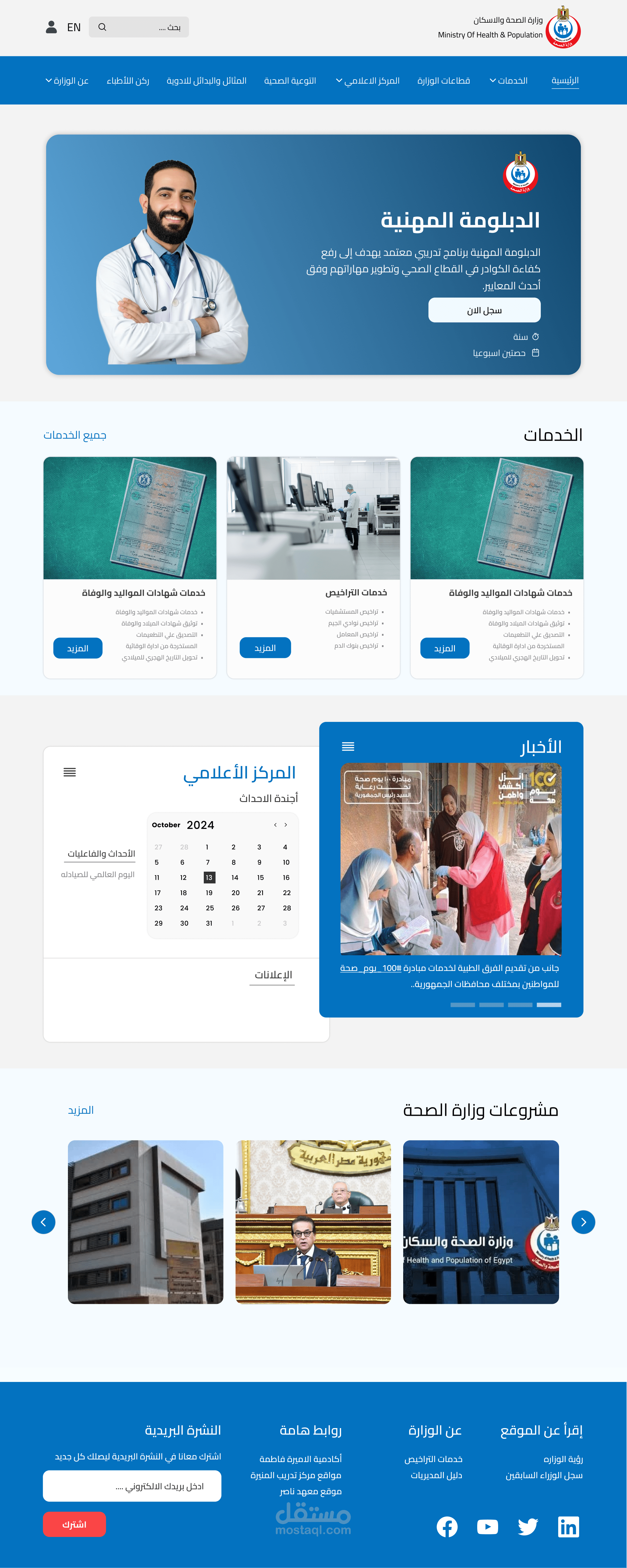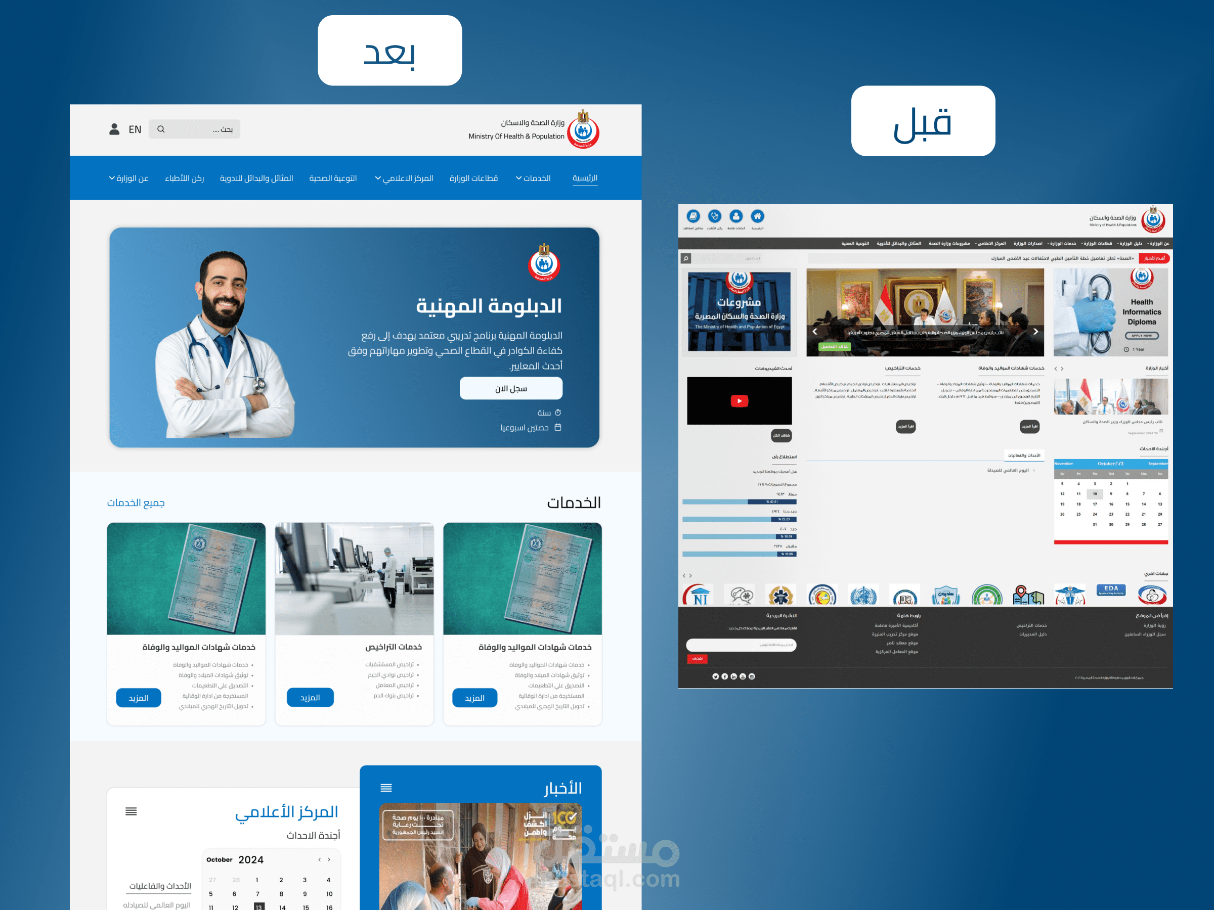 عملت على إعادة تصميم موقع وزارة الصحة بهدف تحسين تجربة المستخدم وتبسيط الوصول إلى الخدمات الإلكترونية. طبّقت مبادئ تصميم تجربة المستخدم (UX) لضمان وضوح الهيكل وسهولة التنقّل وتقديم تجربة أكثر سلاسة للزوار، مع تحديث الهوية البصرية بما يعكس الطابع الرسمي للوزارة وتحسين الأداء عبر مختلف الأجهزة.