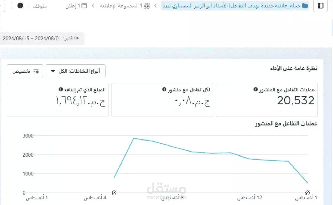 نتائج حملة إعلانية ممولة على فيسبوك لمتجر إكسسوارات سعودي