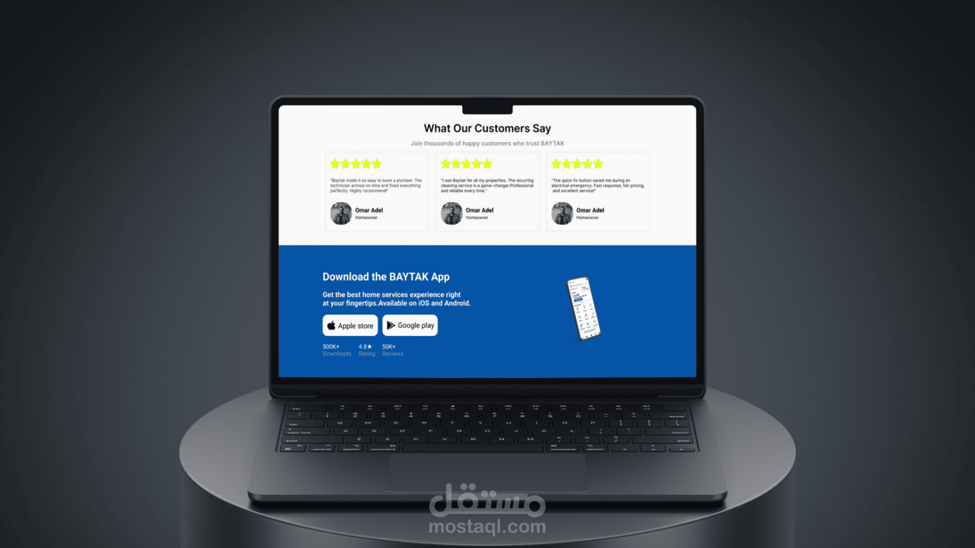 تم تصميم صفحة الهبوط لتُبرز مميزات التطبيق، وتعرض آلية العمل، وآراء المستخدمين، وروابط التحميل بشكل جذاب وواضح يعزز ثقة الزائر ويدفعه للتفاعل.