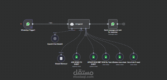 أنا أنشأت شات بوت على واتساب يعمل كمساعد شخصي ذكي لإدارة المهام لصاحب العلامة التجارية.