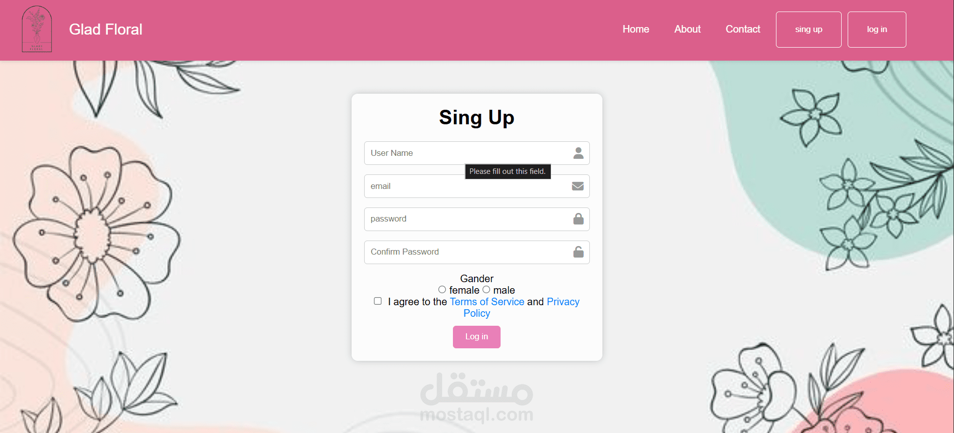 مشروع Glad Floral - متجر زهور إلكتروني