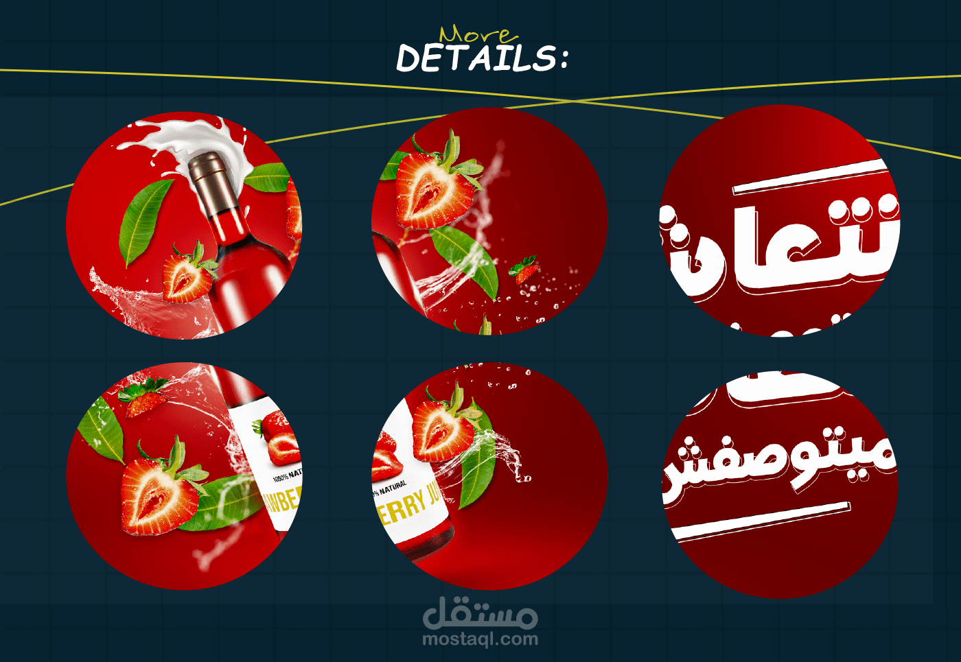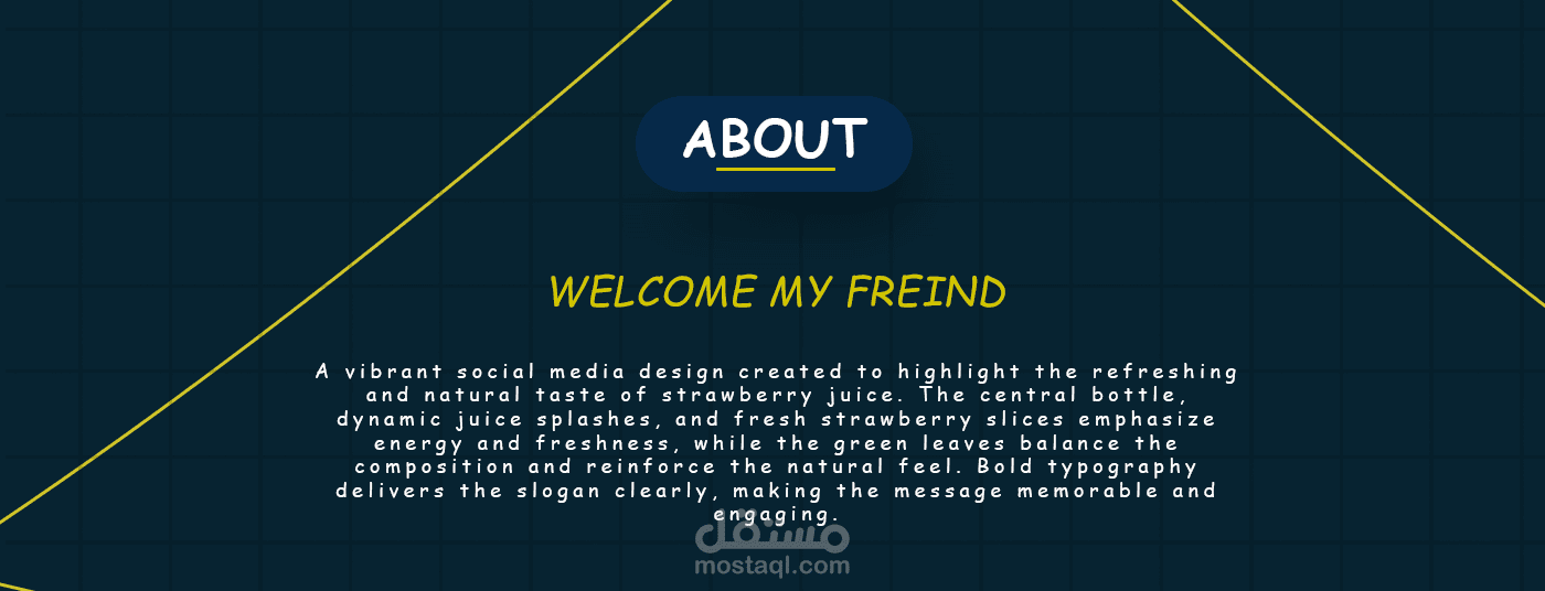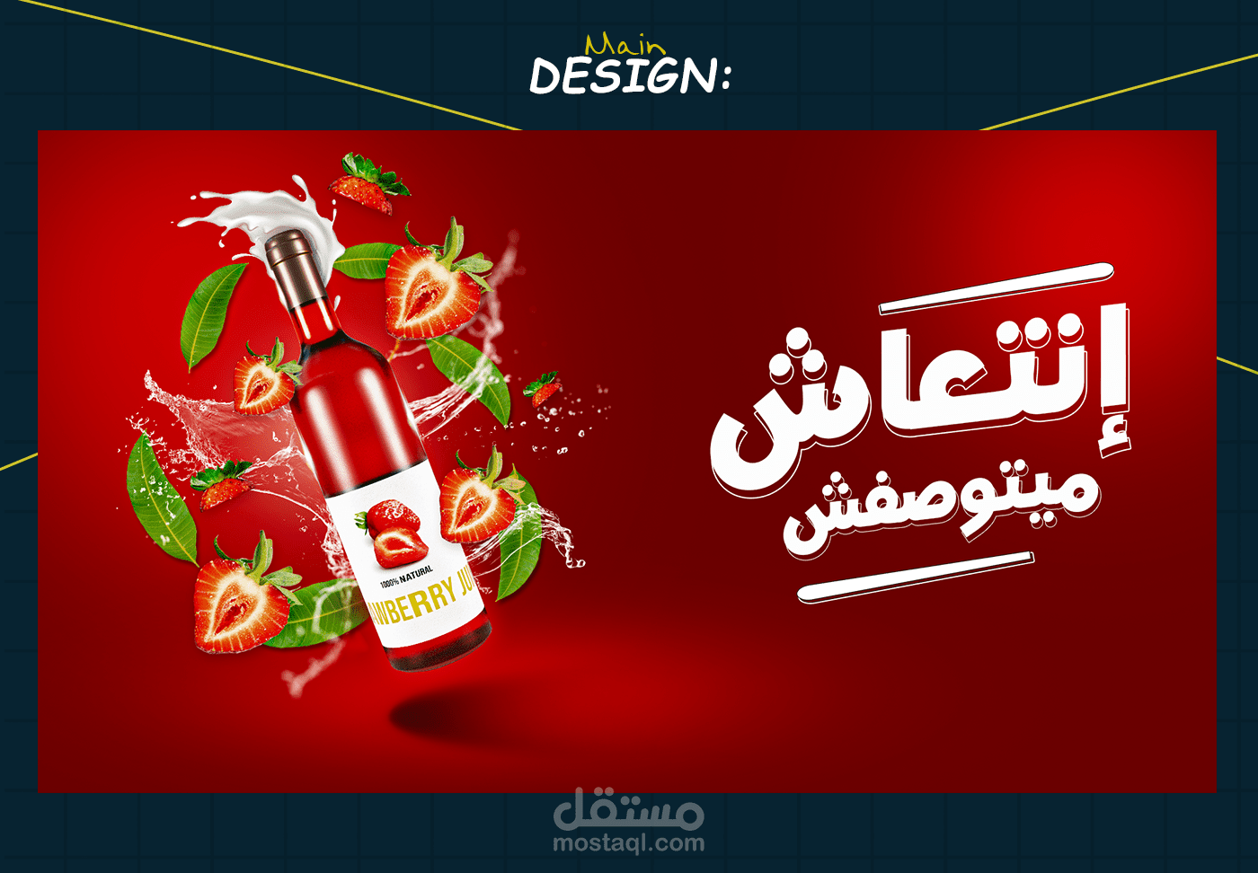 A vibrant social media design created to highlight the refreshing and natural taste of strawberry juice. The central bottle, dynamic juice splashes, and fresh strawberry slices emphasize energy and freshness, while the green leaves balance the composition and reinforce the natural feel. Bold typography delivers the slogan clearly, making the message memorable and engaging.