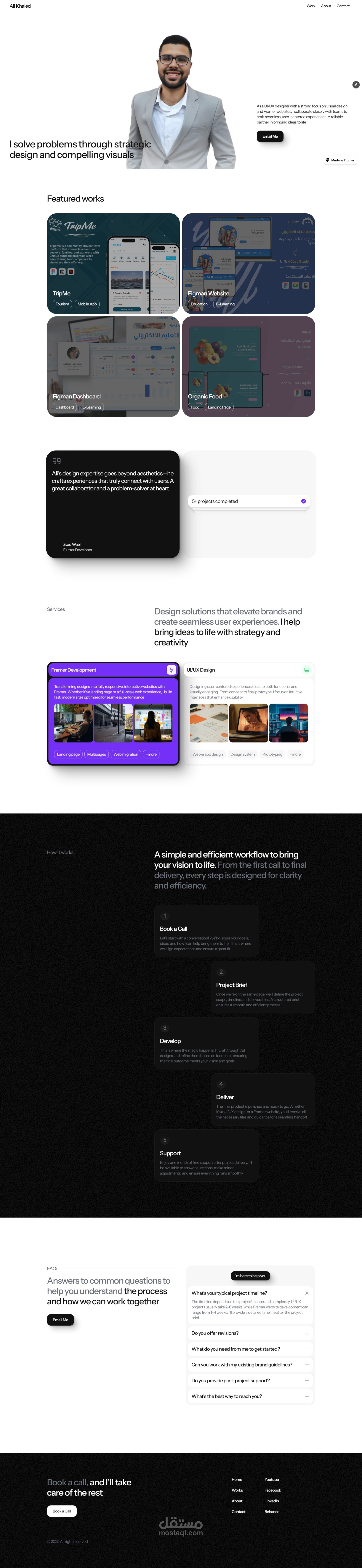 من خلال Framer قدرت أقدم تجربة تصفح تفاعلية وسريعة، وأعرض المشاريع بطريقة منظمة بتوضح مراحل التصميم من البحث لحد التسليم.