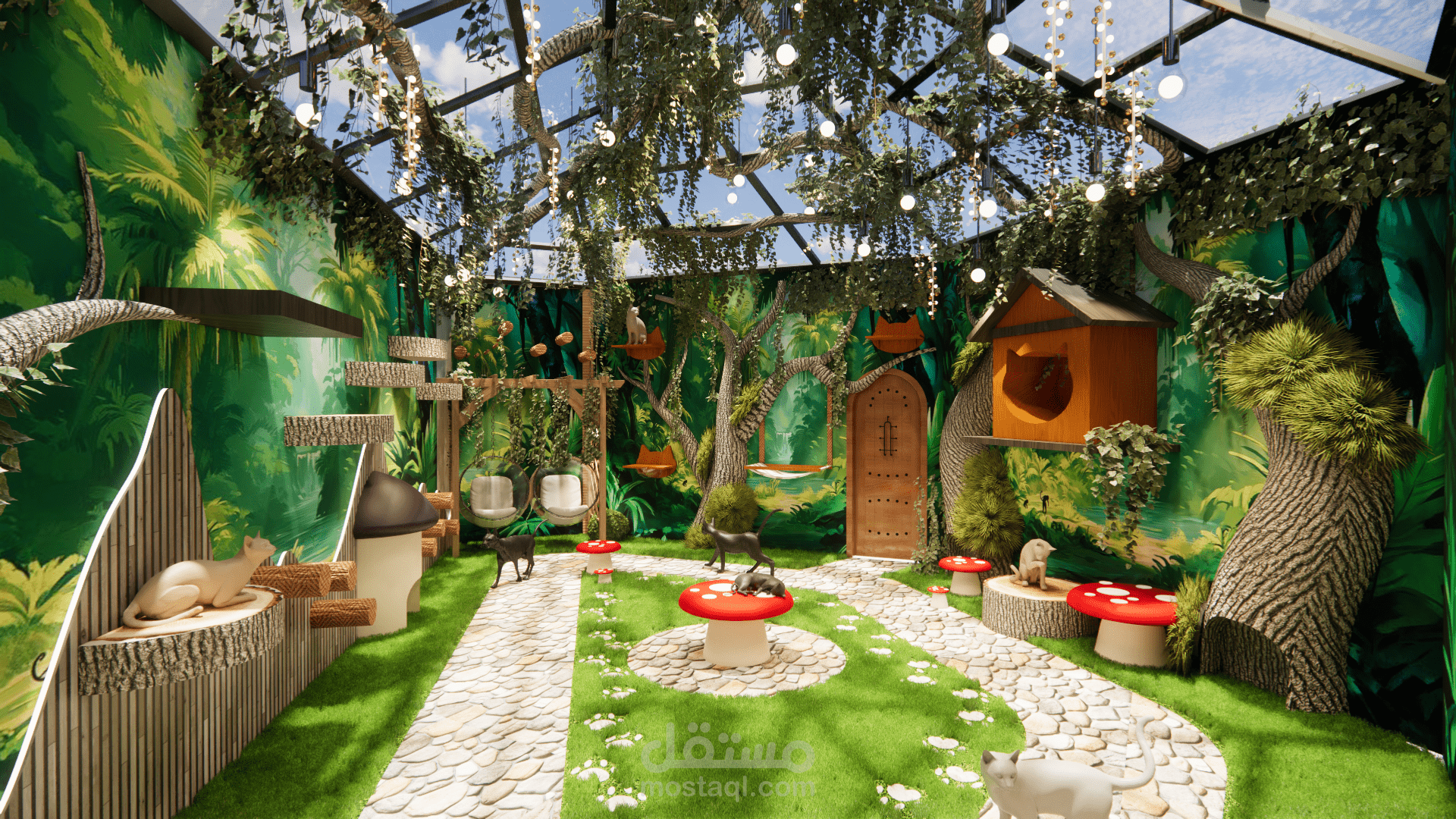 حديقة الحيوانات المغلقة ( مشروع تخرج) : عبارة عن مكان ترفيهي يوجد به عدة أقسام ، أولا قسم الاستقبال يوجد به أماكن للانتظار وبعض المحلات التجارية للمأكولات والمشروبات الخفيفة ومحلات للألعاب والتذكارات ، ثانيا قسم الحيوانات : يوجد به عدة أنواع من الحيوانات مثل الثعالب والقردة والباندا والنسور...... ولكل حيوان مكان واسع ومريح وبيئية تحاكي بيئته الطبيعية مع مراعات درجة الحرارة والرطوبة والتهوية المناسبة لكل حيوان ، وأيضا يوجد قسم التفاعل مع الحيوانات الأليفة وإطعامها مثل القطط والأرانب والسلاحف والطيور فهو قسم ممتع للأطفال ولجميع هواة الحيوانات ، وأخيرا قسم المطاعم وهو مقسم لثلاثة أجزاء جزء يحاكي طبيعة الغابات وقسم يحاكي طبيعة البحار ( أكواريوم) وقسم يحاكي طبيعة الصحراء .