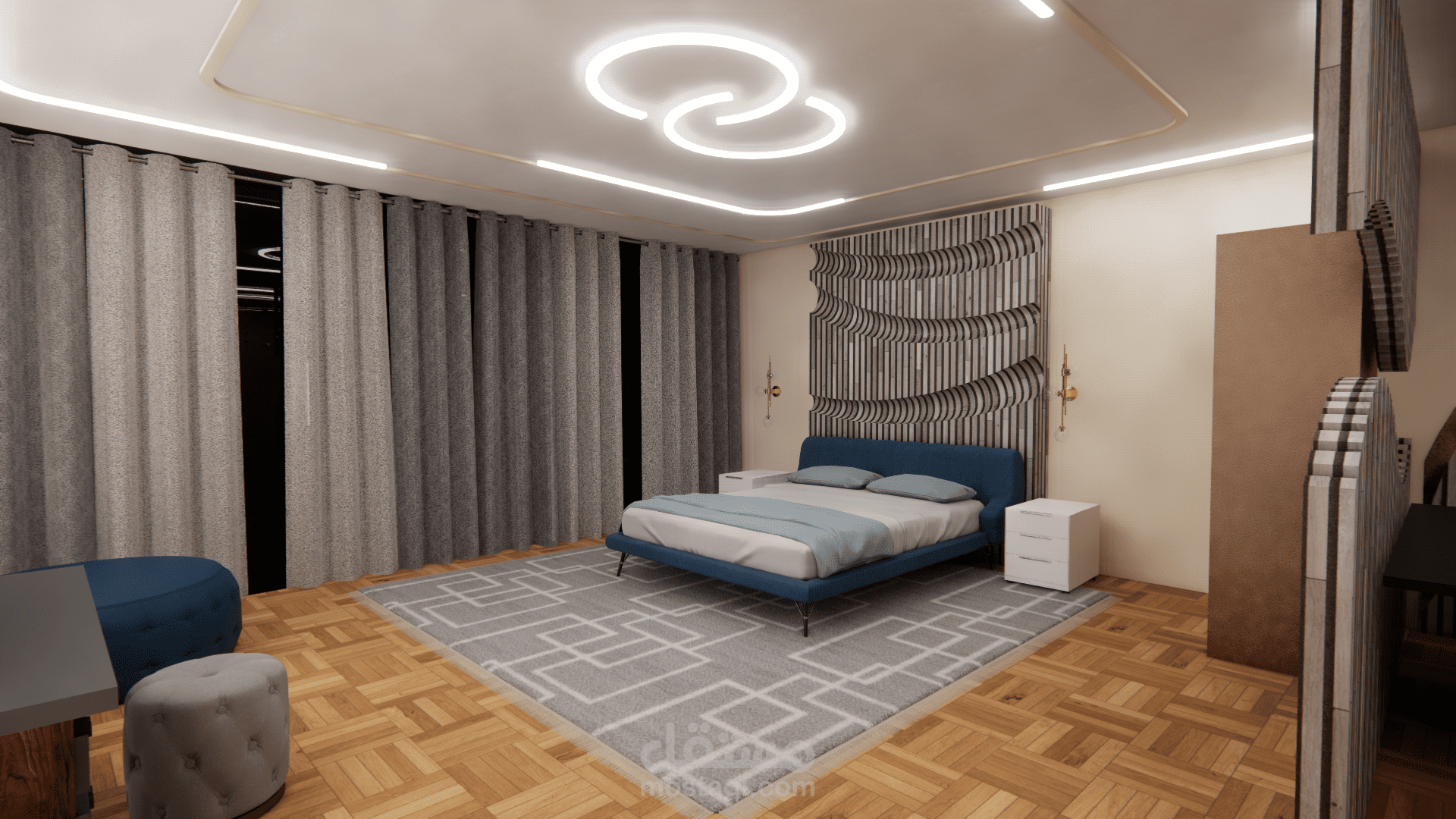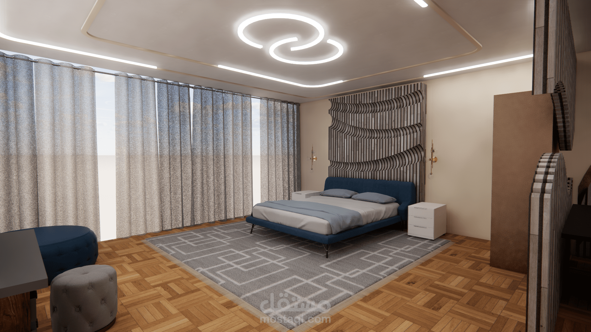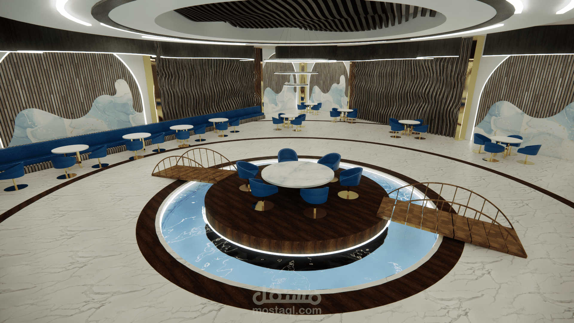 الفكرة التصميمية ( concept ) : أمواج البحر ، نوع الطراز المستخدم : البارامتري . ( المشروع تم تصميمه أثناء دراستي في الجامعة وهو غير حقيقي ).