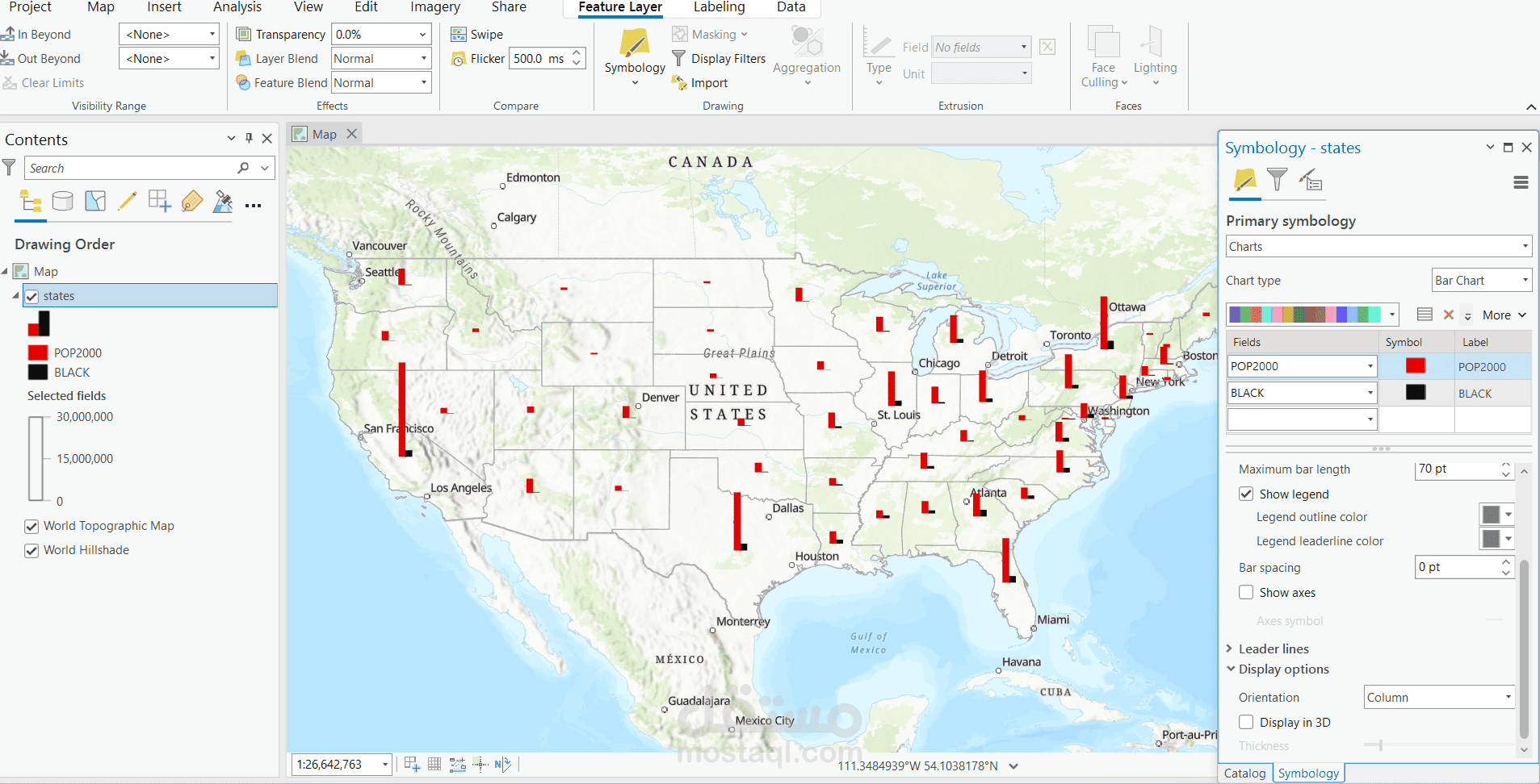في هذا المشروع، قمت بتحليل الأنماط الديموغرافية في الولايات المتحدة الأمريكية وتصويرها باستخدام ArcGIS Pro، مستفيدًا من مزيج متكامل من التقنيات الإحصائية والكارتوغرافية.