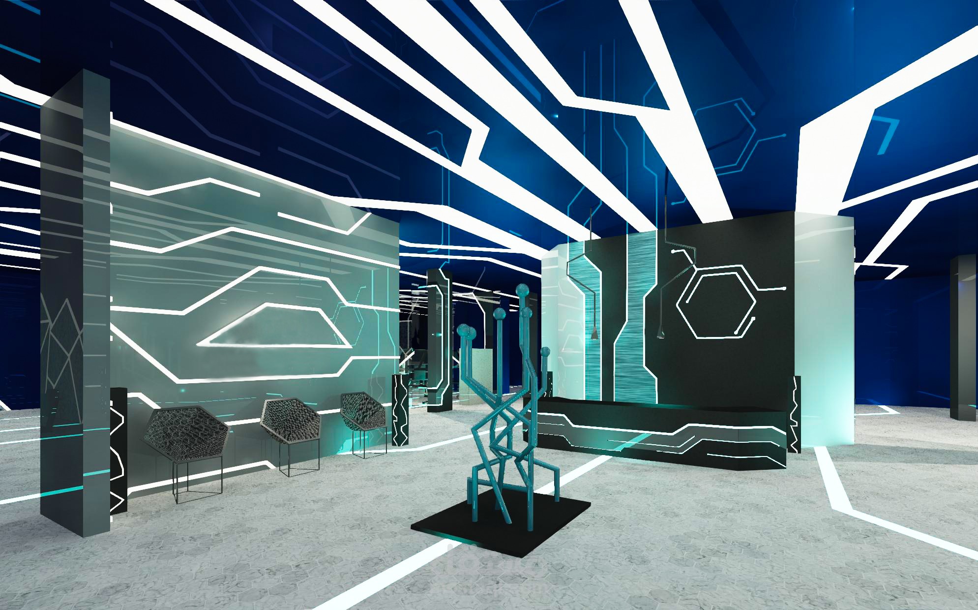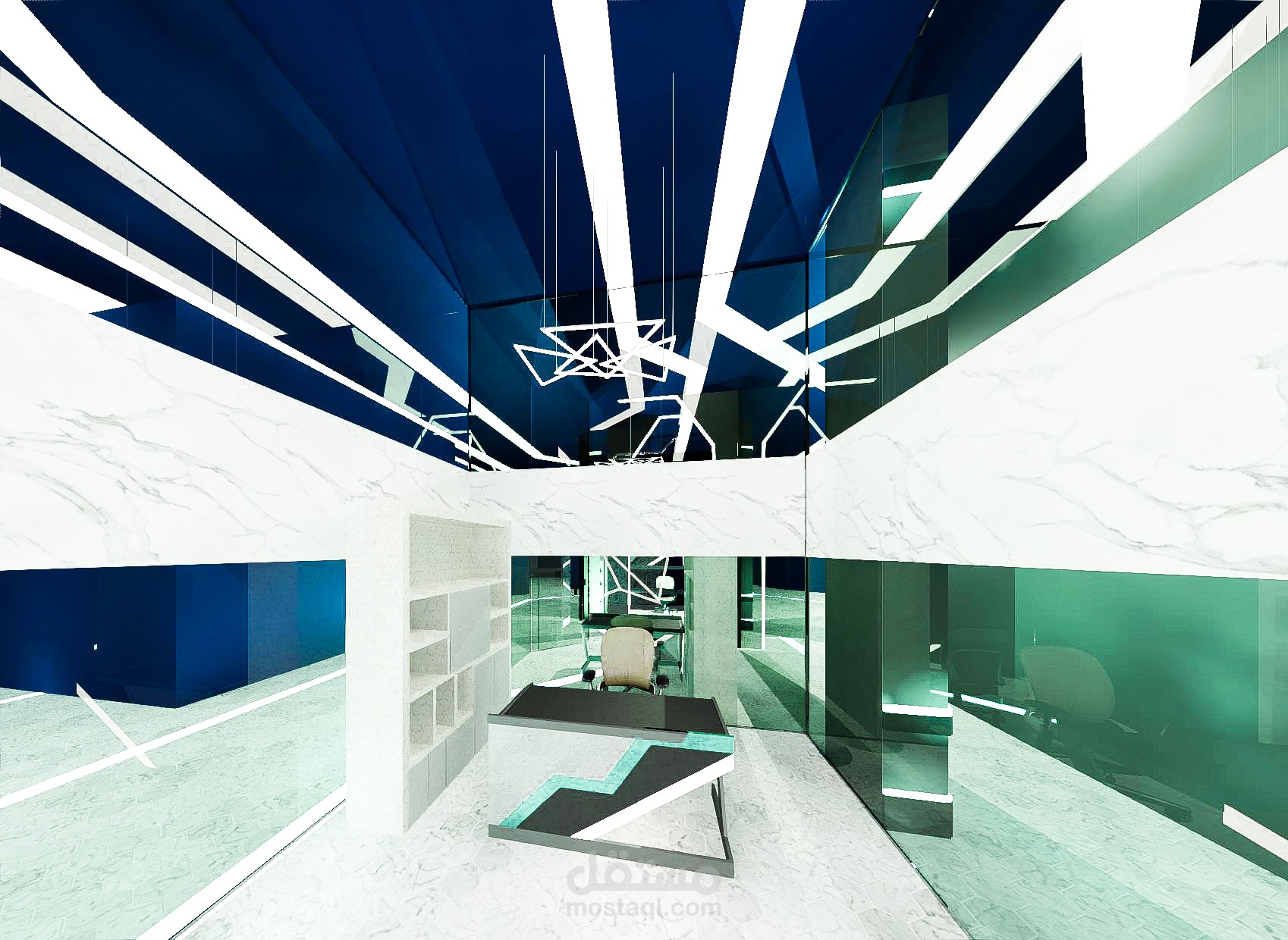 يوجد بها قسم الاستقبال وهناك مكاتب مفتوحة للموظفين ومكاتب مغلقة أيضا ويوجد قسم ترفيهي للموظفين وبالتأكيد غرفة المدير الشركة عبارة عن دور واحد فقط فهي ليست كبيرة ، الفكرة التصميمية مقتبسة من الدائرة المتكاملة ( integrated circuit ) وتسمى أيضا ب شريحة إلكترونية أو معالج ( microchip / processor ) .