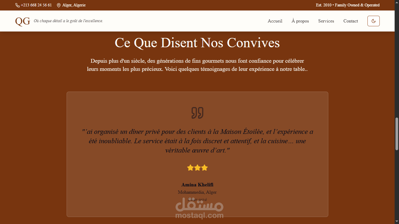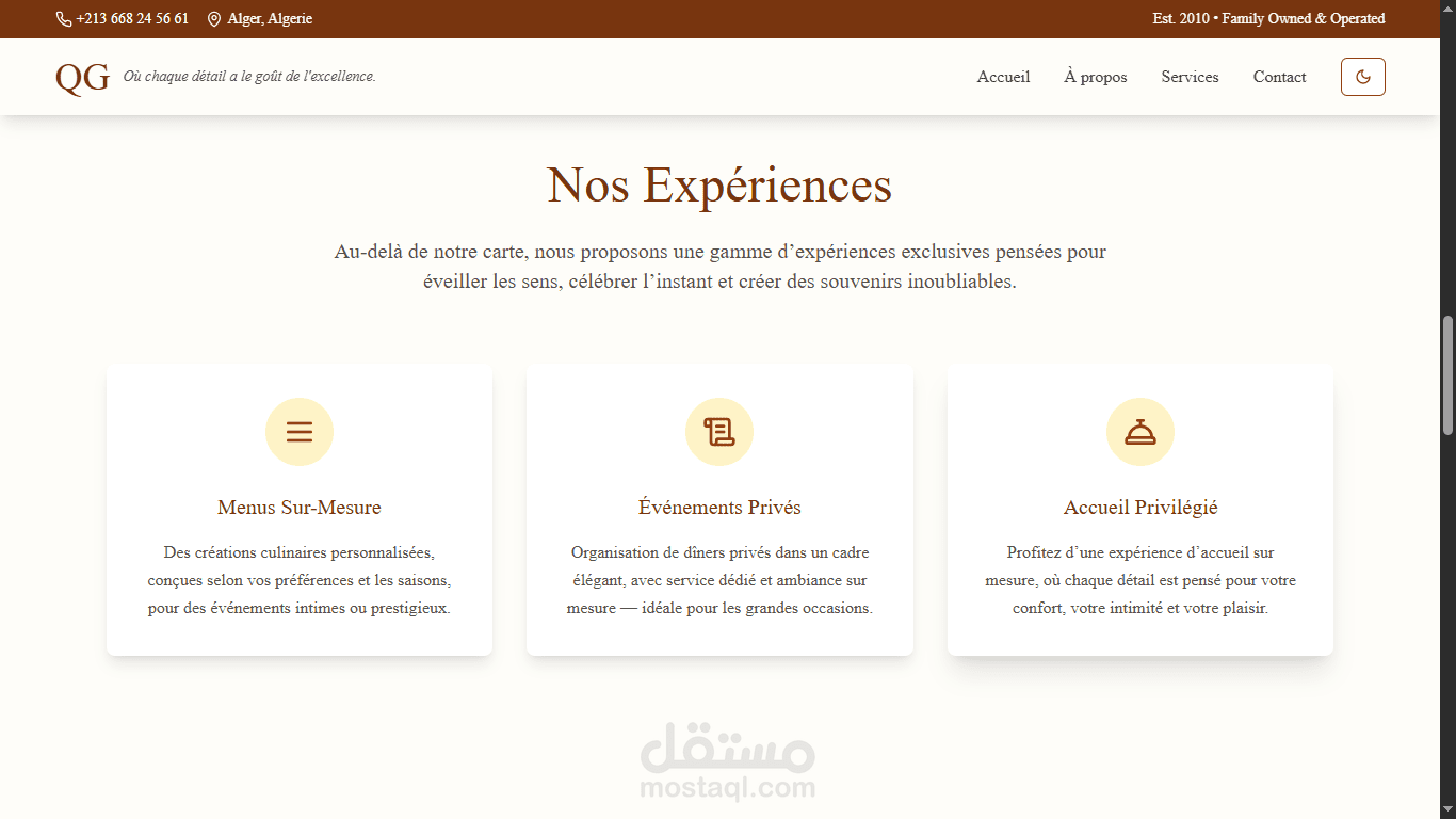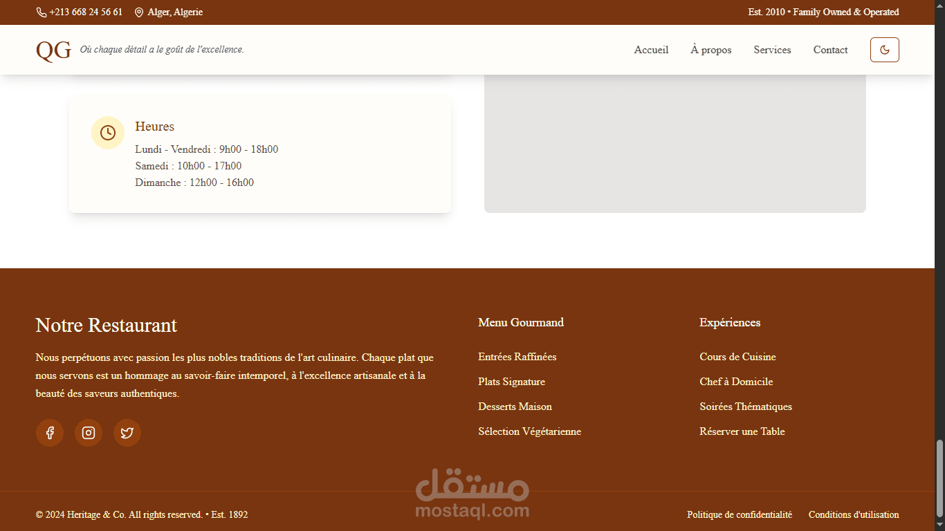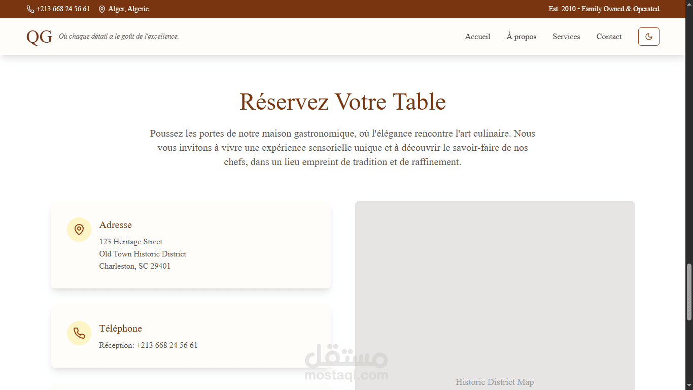 A web site for a local high-end restaurant in Algiers, Algeria. It was made to improve online presence of the restaurant. It includes: