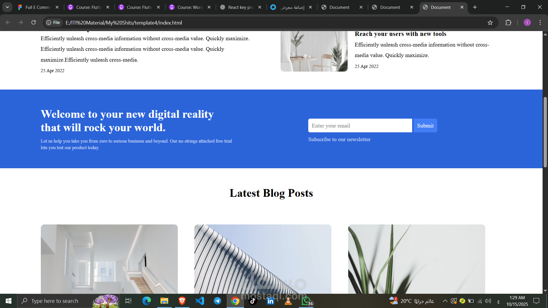 قمت بتصميم وتطوير قالب موقع مدونة احترافي (Blog Template) باستخدام HTML, CSS, و JavaScript، بتصميم بسيط وحديث يناسب الشركات، صُنّاع المحتوى، أو المواقع الإخبارية.