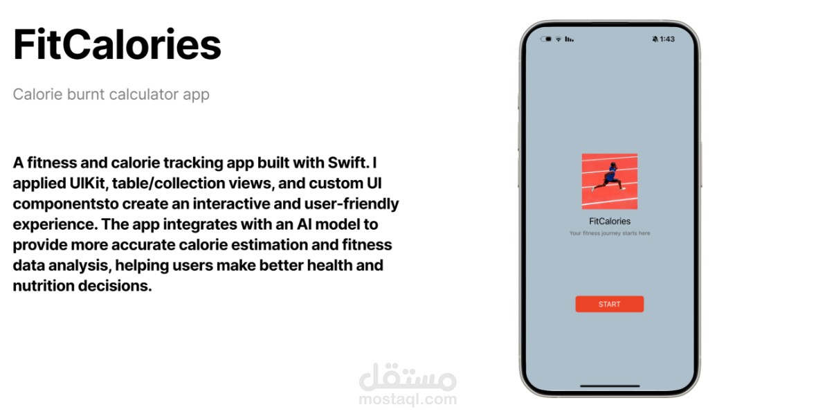 A fitness and calorie tracking app built with Swift using UlKit and custom Ul components. It integrates an Al model for smarter calorie estimation