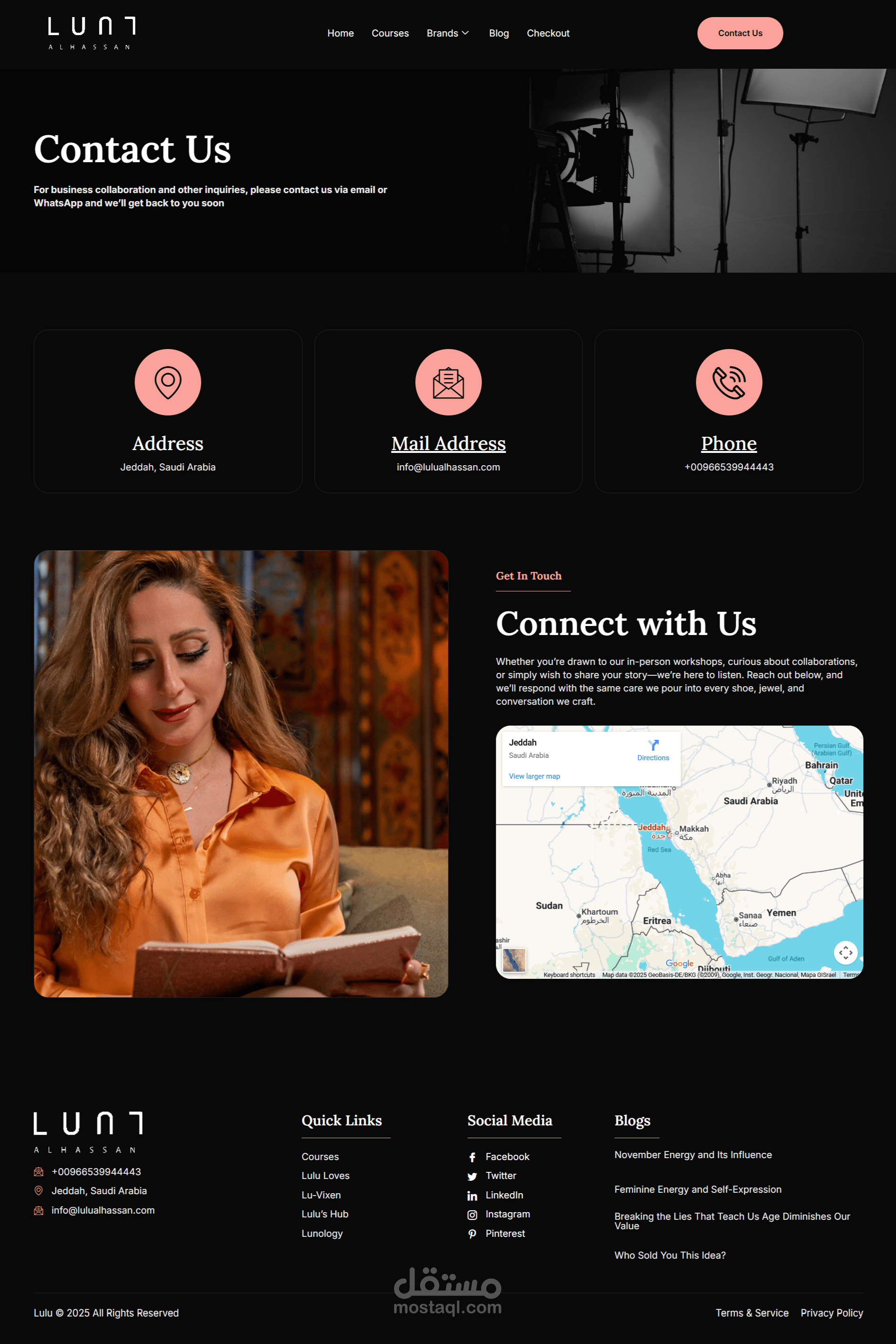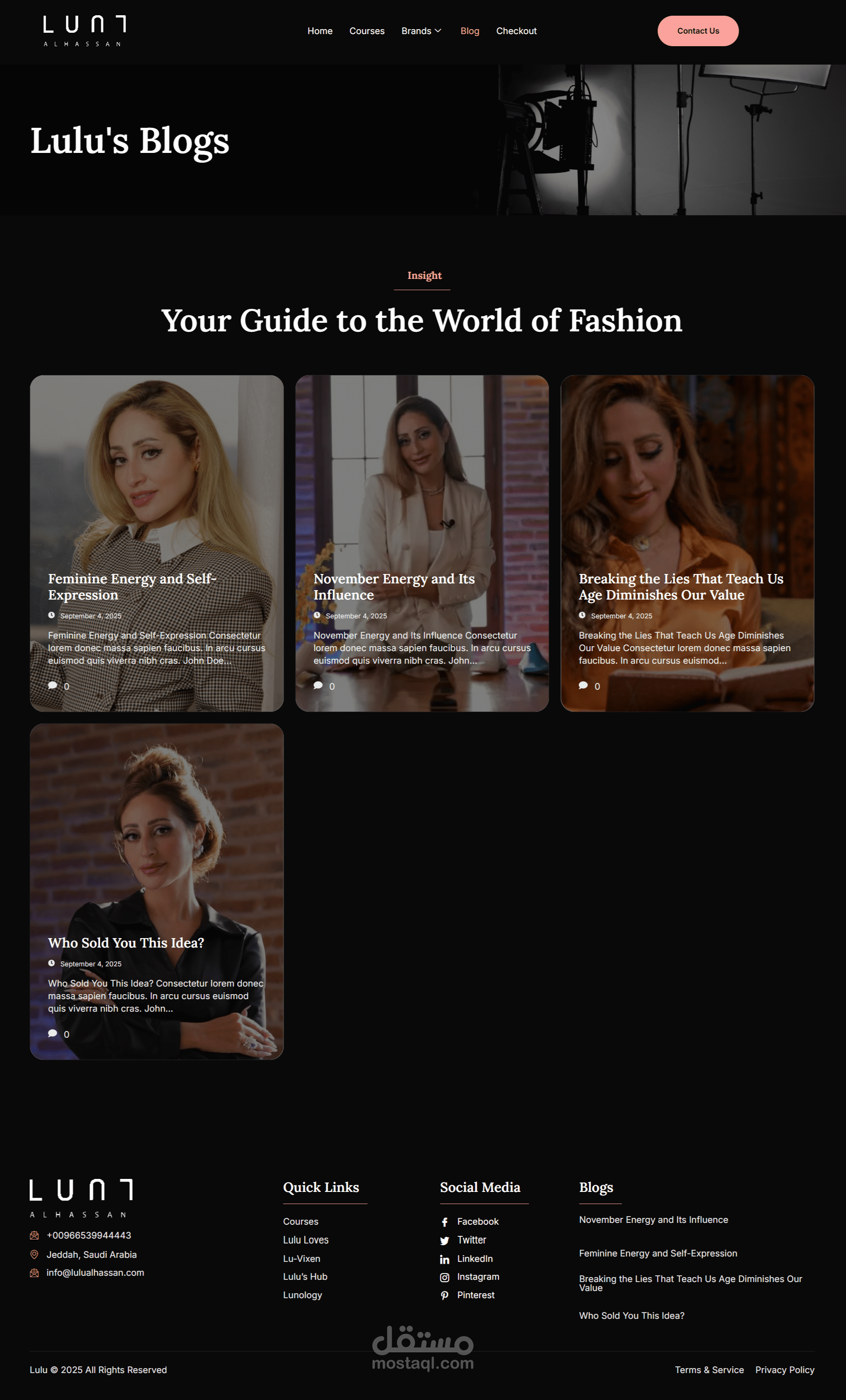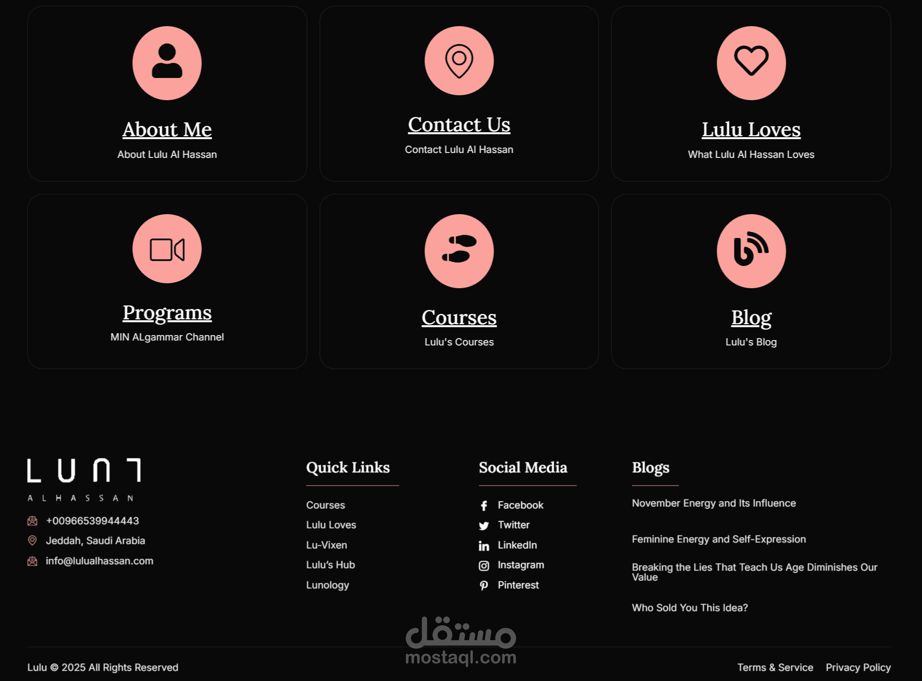 تصميم وتطوير موقع شخصي احترافي باستخدام ووردبريس، مع إضافة تعديلات مخصصة بواسطة CSS وJavaScript لتحسين المظهر وتجربة المستخدم.