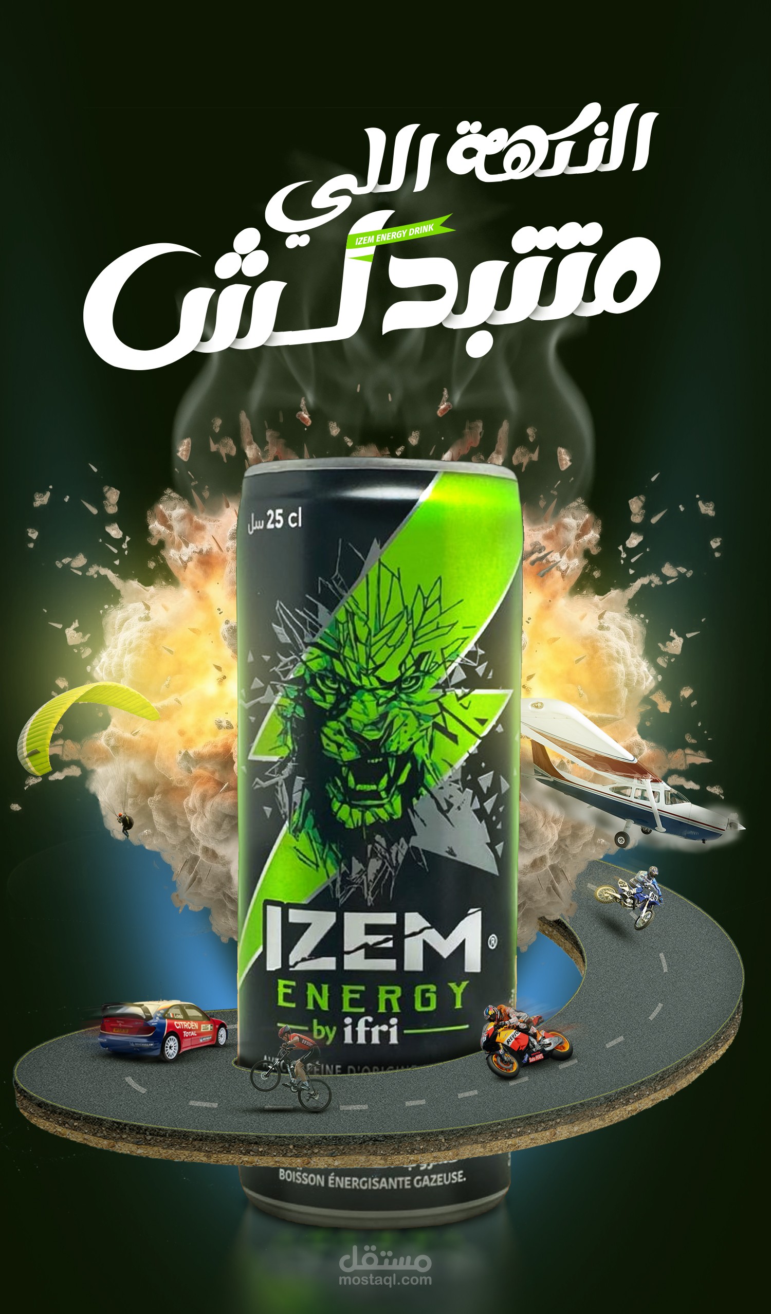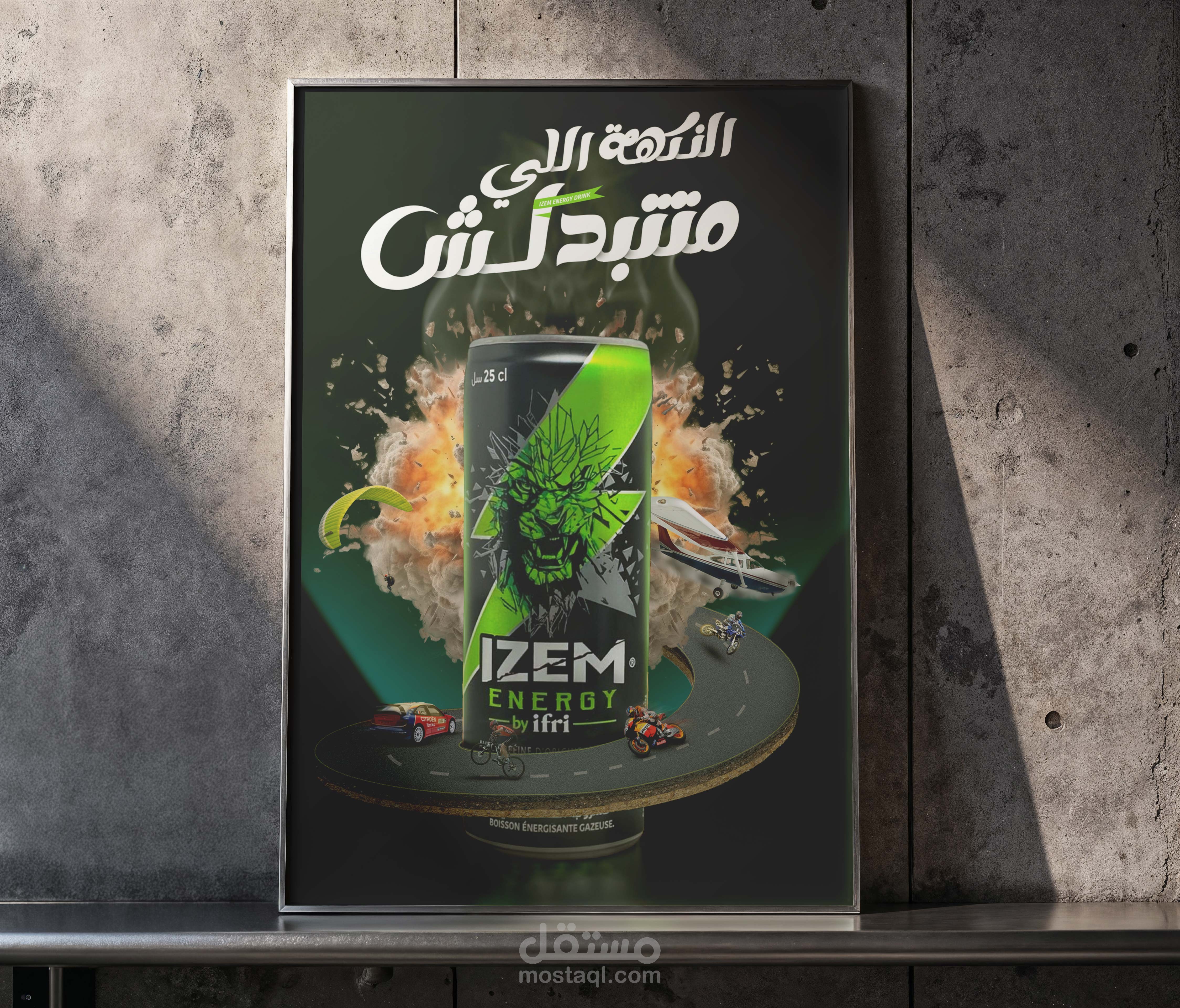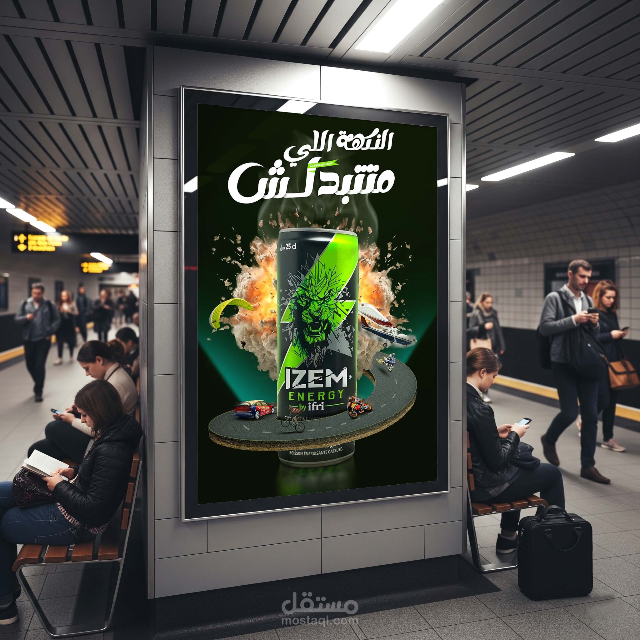 تصميم مميز لعلبة مشروب الطاقة IZEM مستوحى من روح الشباب والطاقة والحيوية.