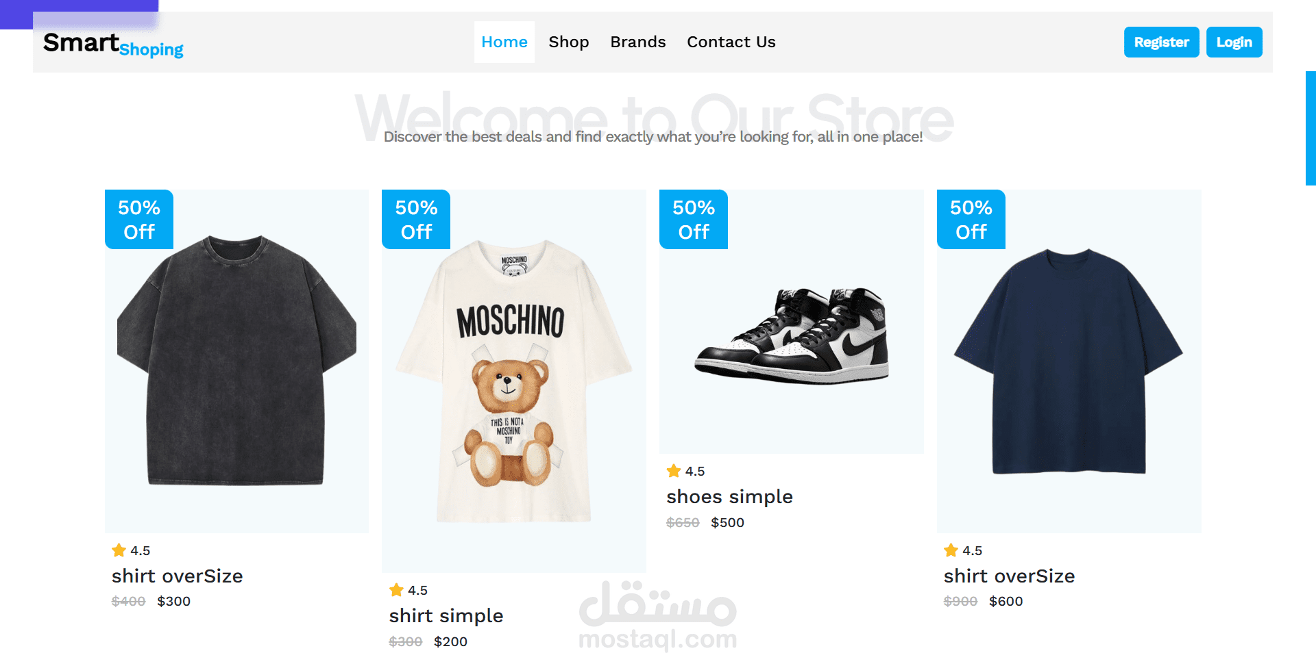 قمت بتطوير منصة تجارة إلكترونية ذكية تتيح للمستخدمين تصفح المنتجات بسهولة، وإضافة العناصر إلى المفضلة، وكتابة التعليقات العامة، والتواصل مع المشرف عبر دردشة فورية مبنية على SignalR.