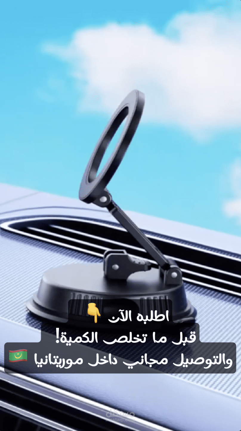 2.الحل: تقديم الحامل المغناطيسي القوي الذي يثبت في أي سطح بسهولة (زجاج، طبلون، مكتب…).