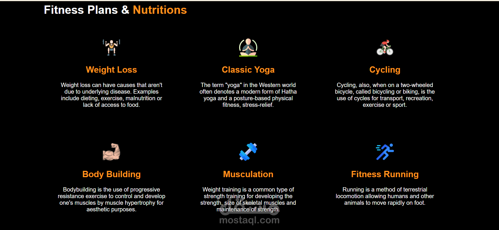 الصفحة ستكون بتصميم عصري ومنسق، وتحتوي على الأقسام التالية: