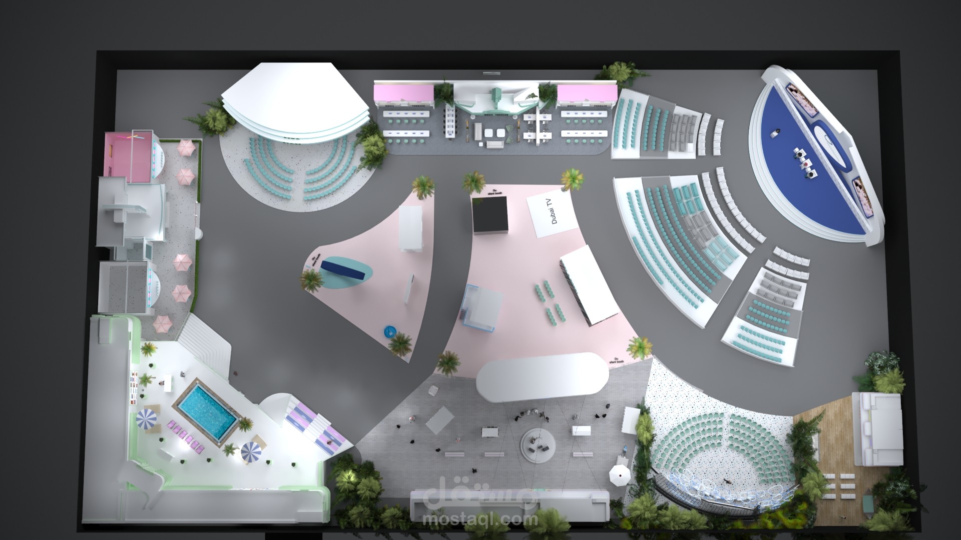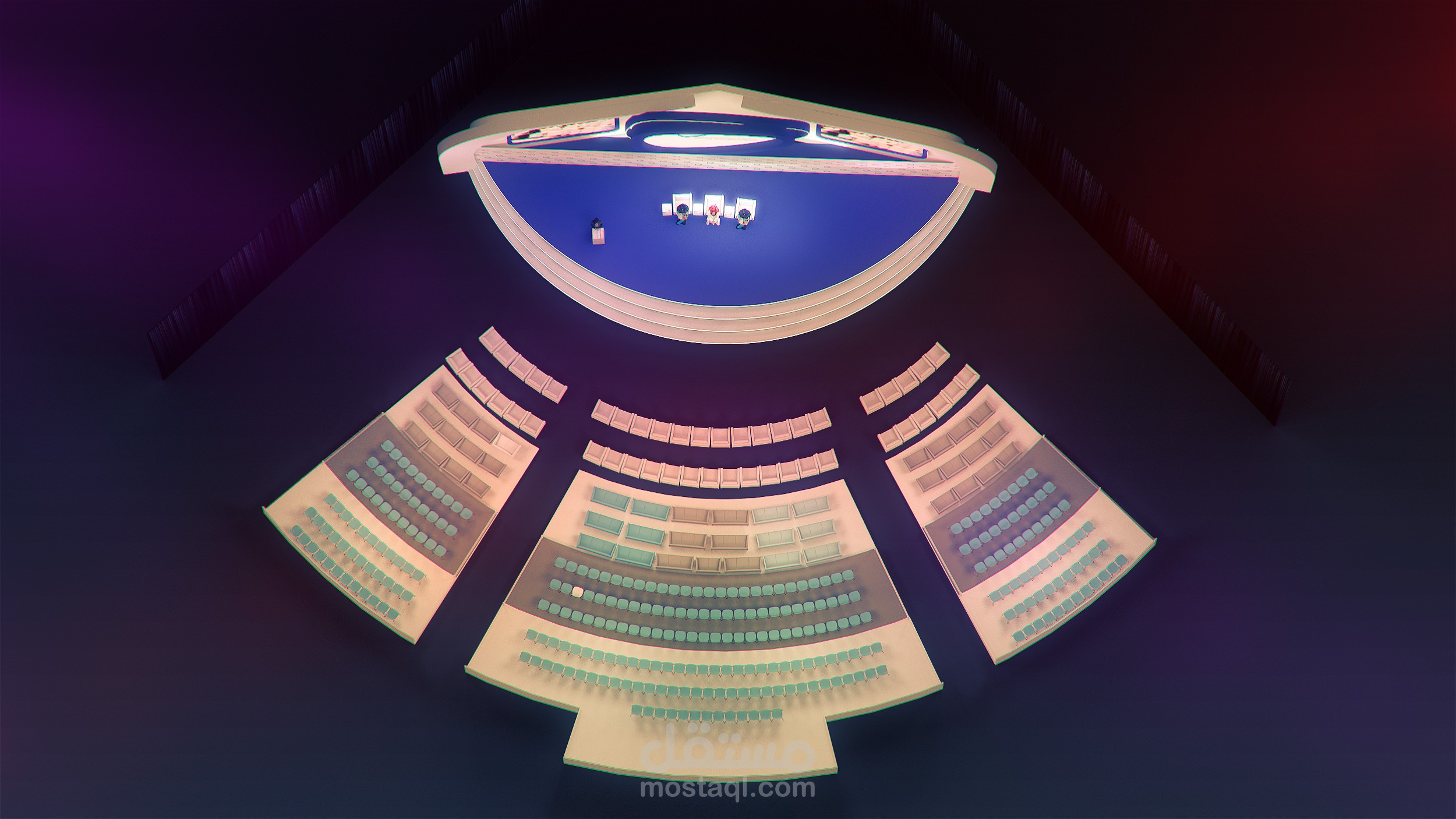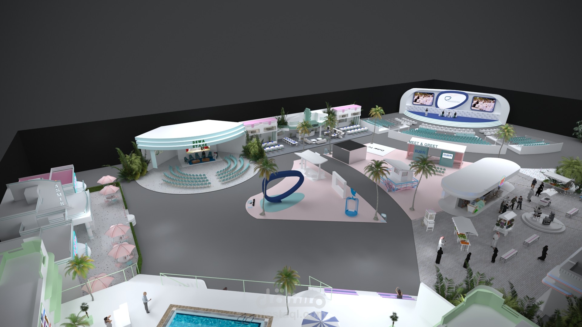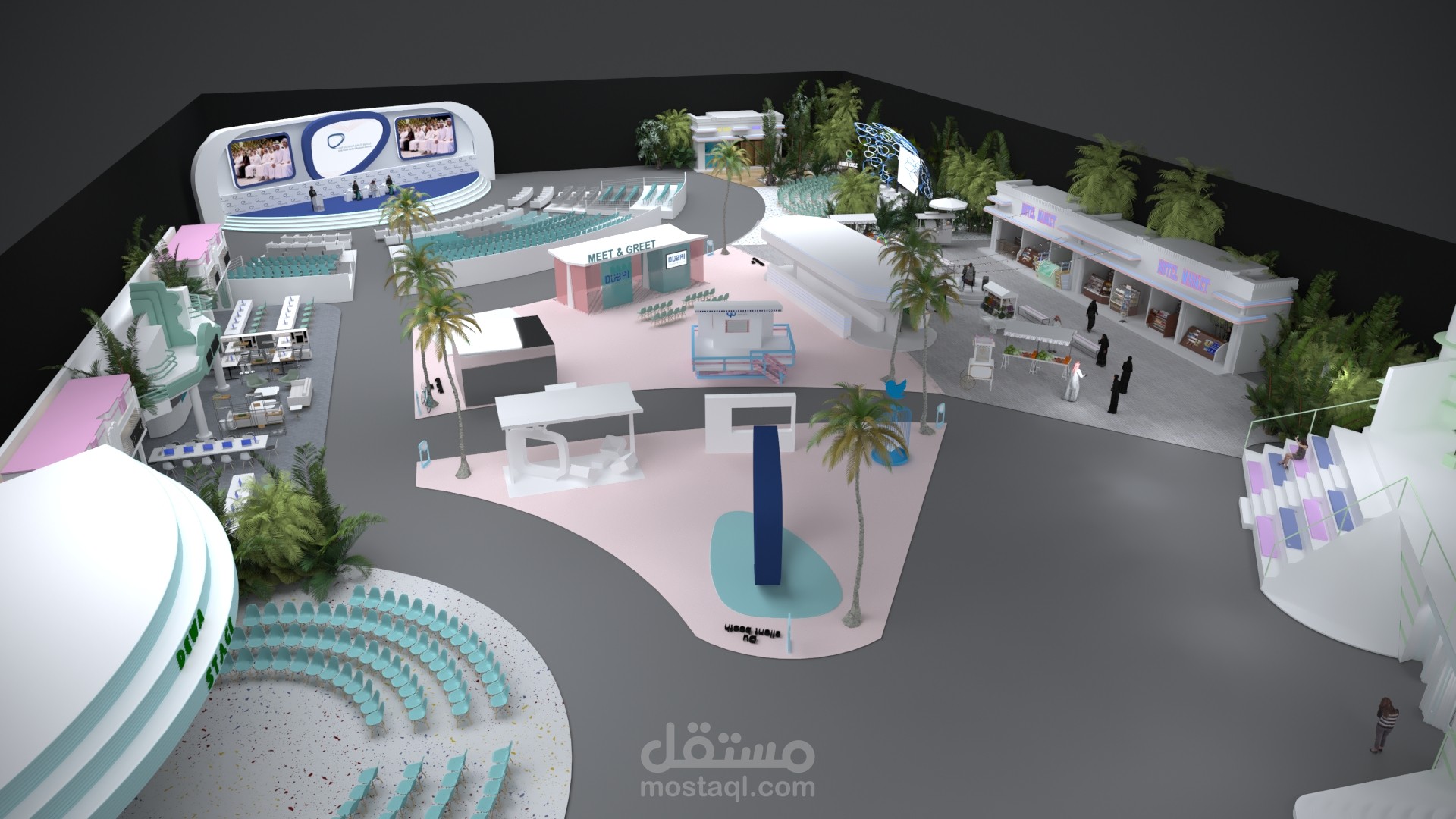 العمل شمل تصميم المساحات والعناصر البصرية داخل القاعة، وتنفيذ عروض 3D وإضاءة تفاعلية تواكب هوية الفعالية وتضيف طابع مبهر للمكان.