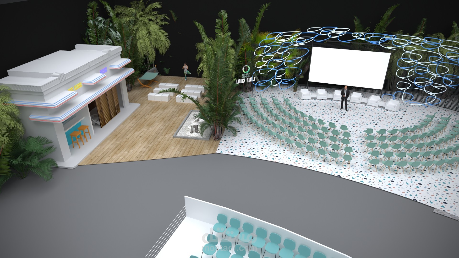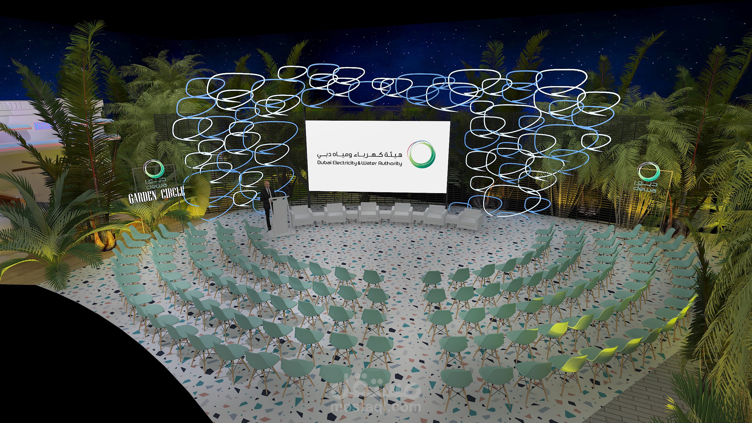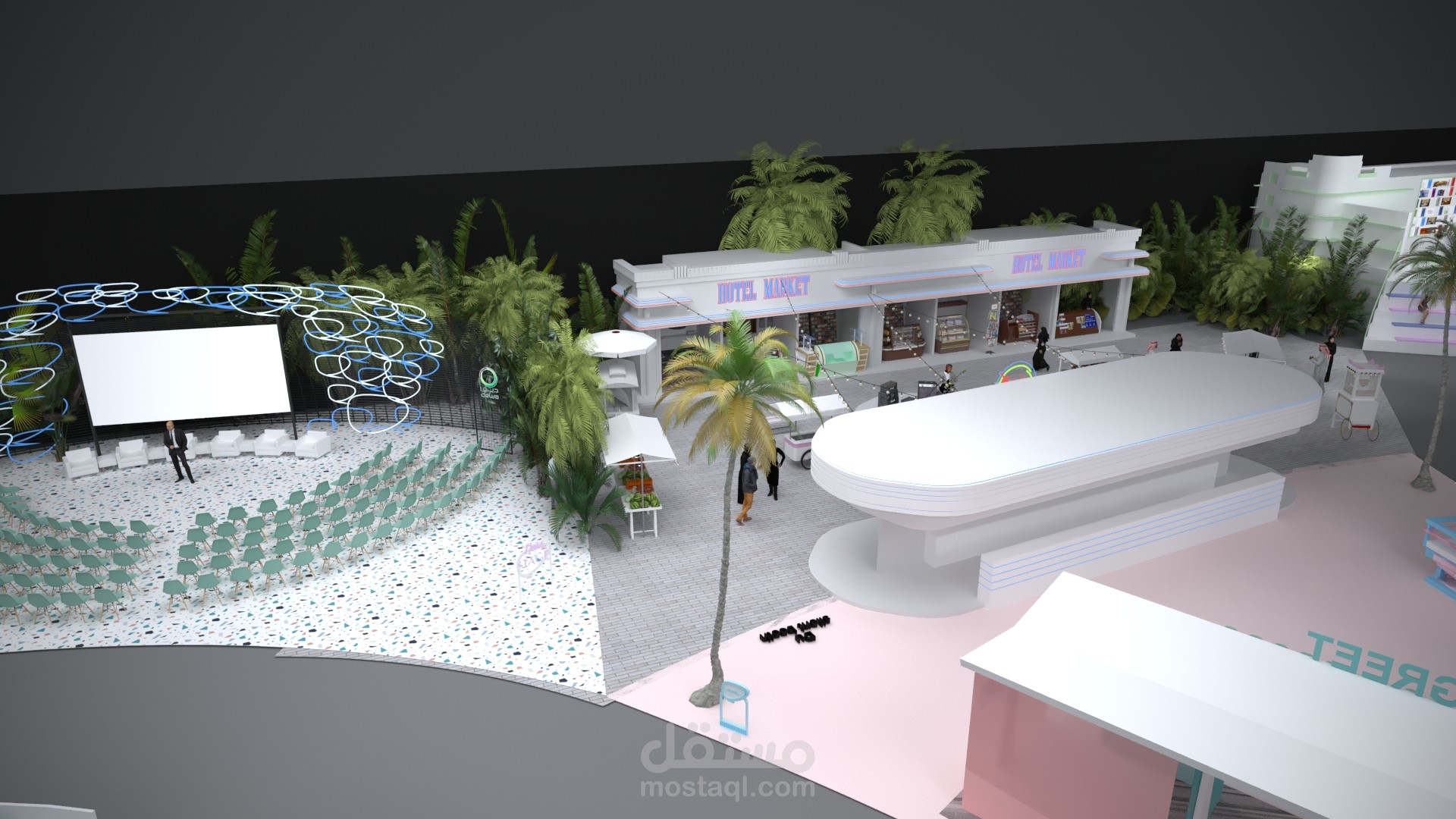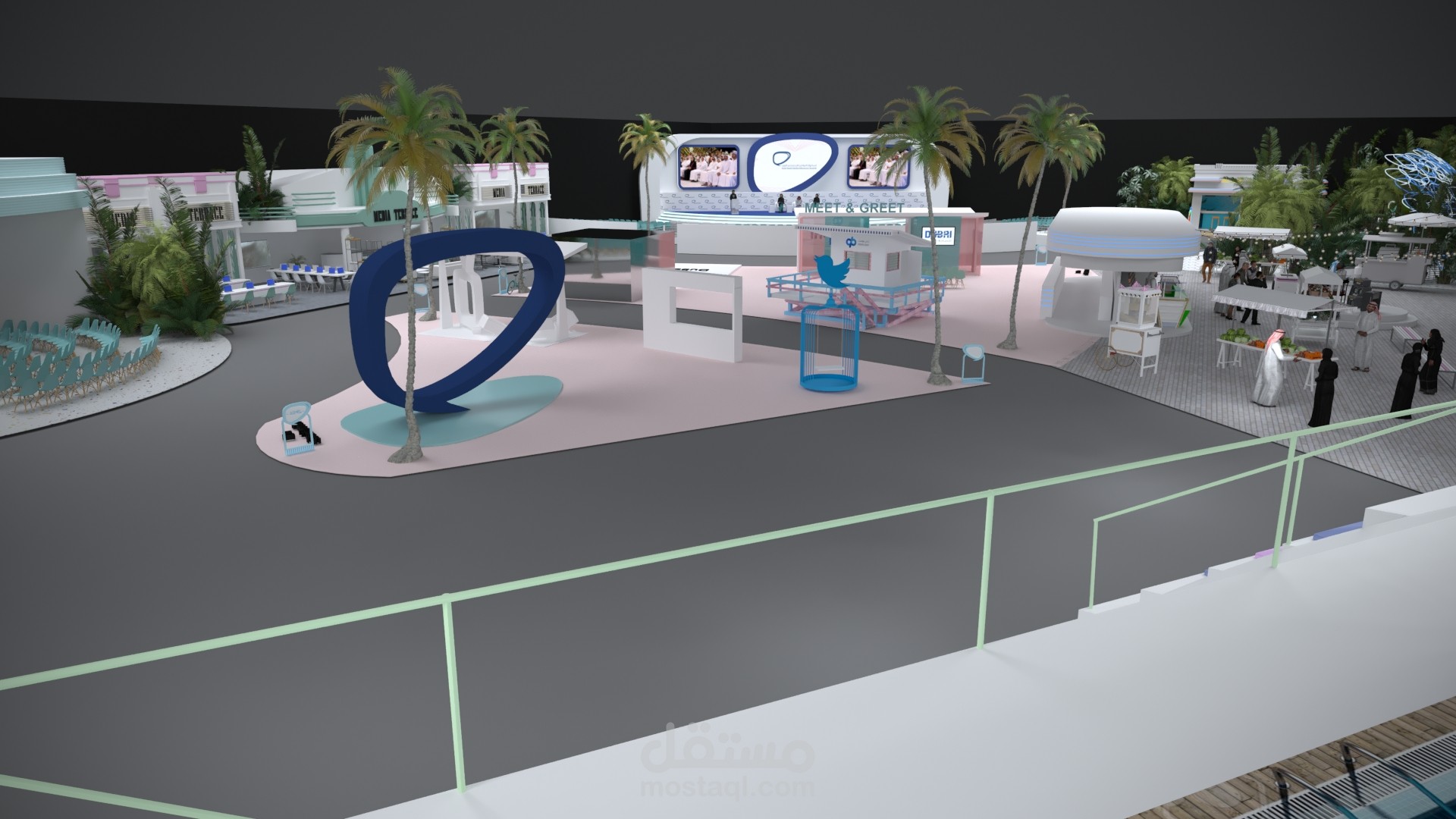 العمل شمل تصميم المساحات والعناصر البصرية داخل القاعة، وتنفيذ عروض 3D وإضاءة تفاعلية تواكب هوية الفعالية وتضيف طابع مبهر للمكان.