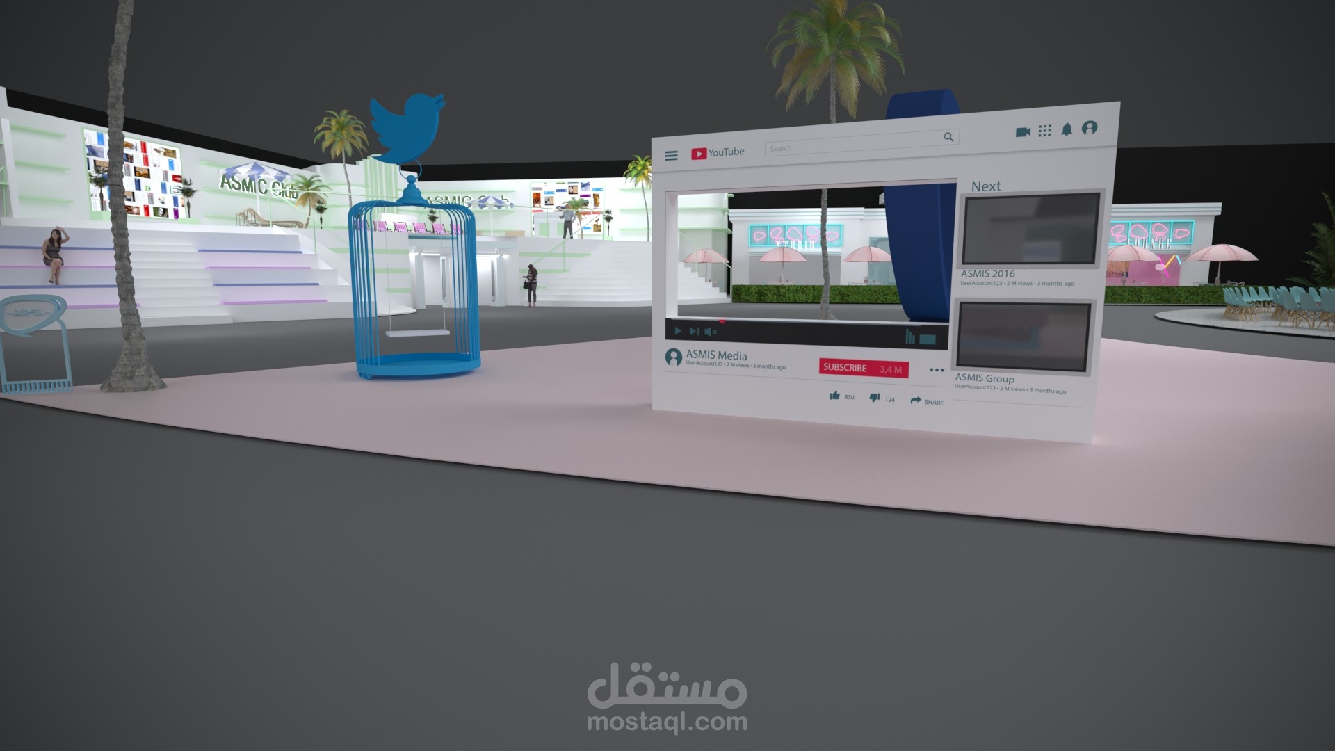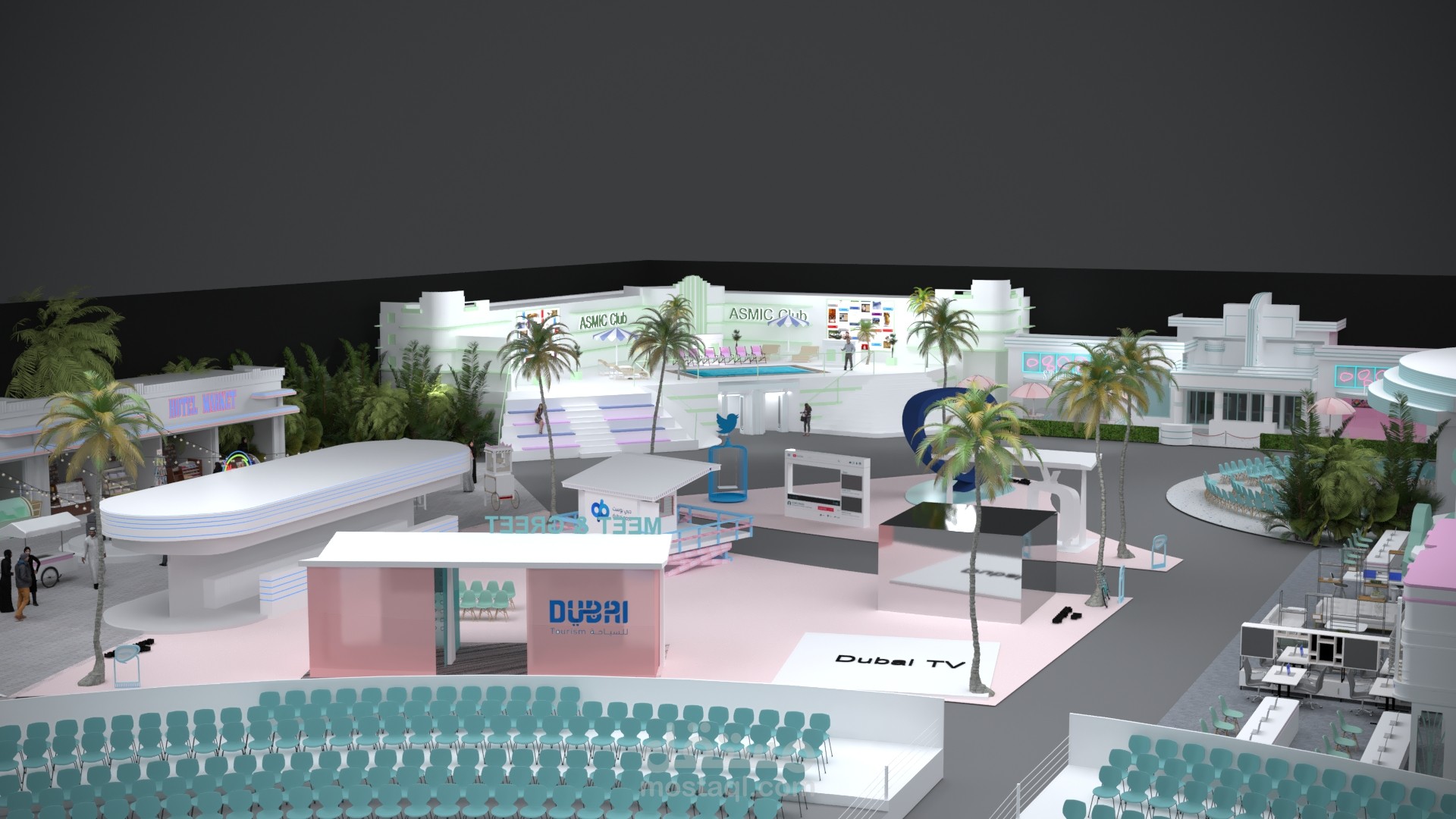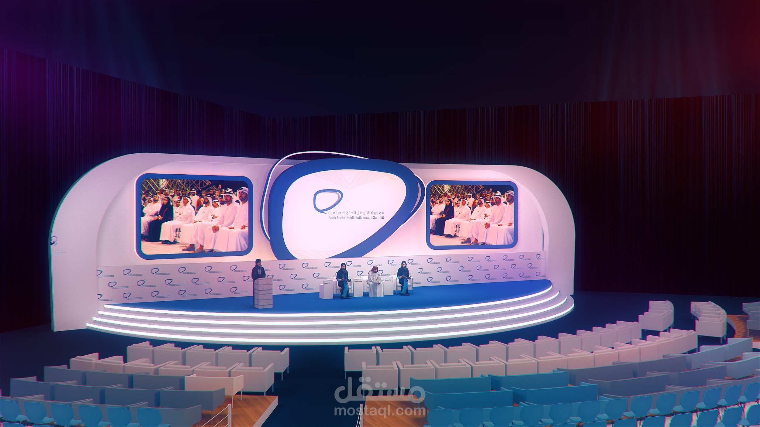 من أبرز المشاريع اللي اشتغلت عليها كان تصميم ضخم لفعالية “Arab Social Media Influencers Summit (ASMIS)” في دبي، وهي واحدة من أهم القمم في المنطقة المخصصة لصنّاع المحتوى والمؤثرين في العالم العربي.