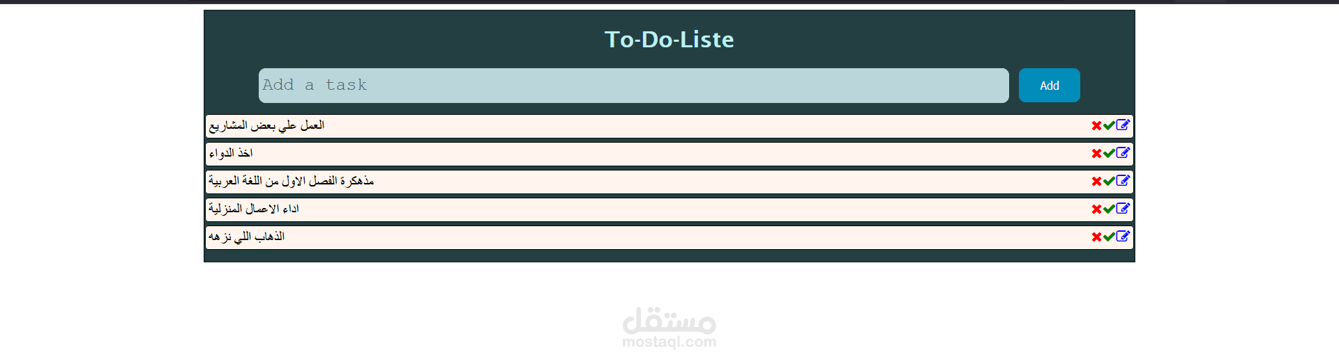 قمت بتصميم وتطوير واجهة مستخدم لموقع إلكتروني TO-DO-LIST باستخدام HTML,CSS ,JS. ركّزت في العمل على إنشاء تصميم متناسق ومتجاوب يعمل بشكل ممتاز على جميع الأجهزة (كمبيوتر – تابلت – موبايل) .