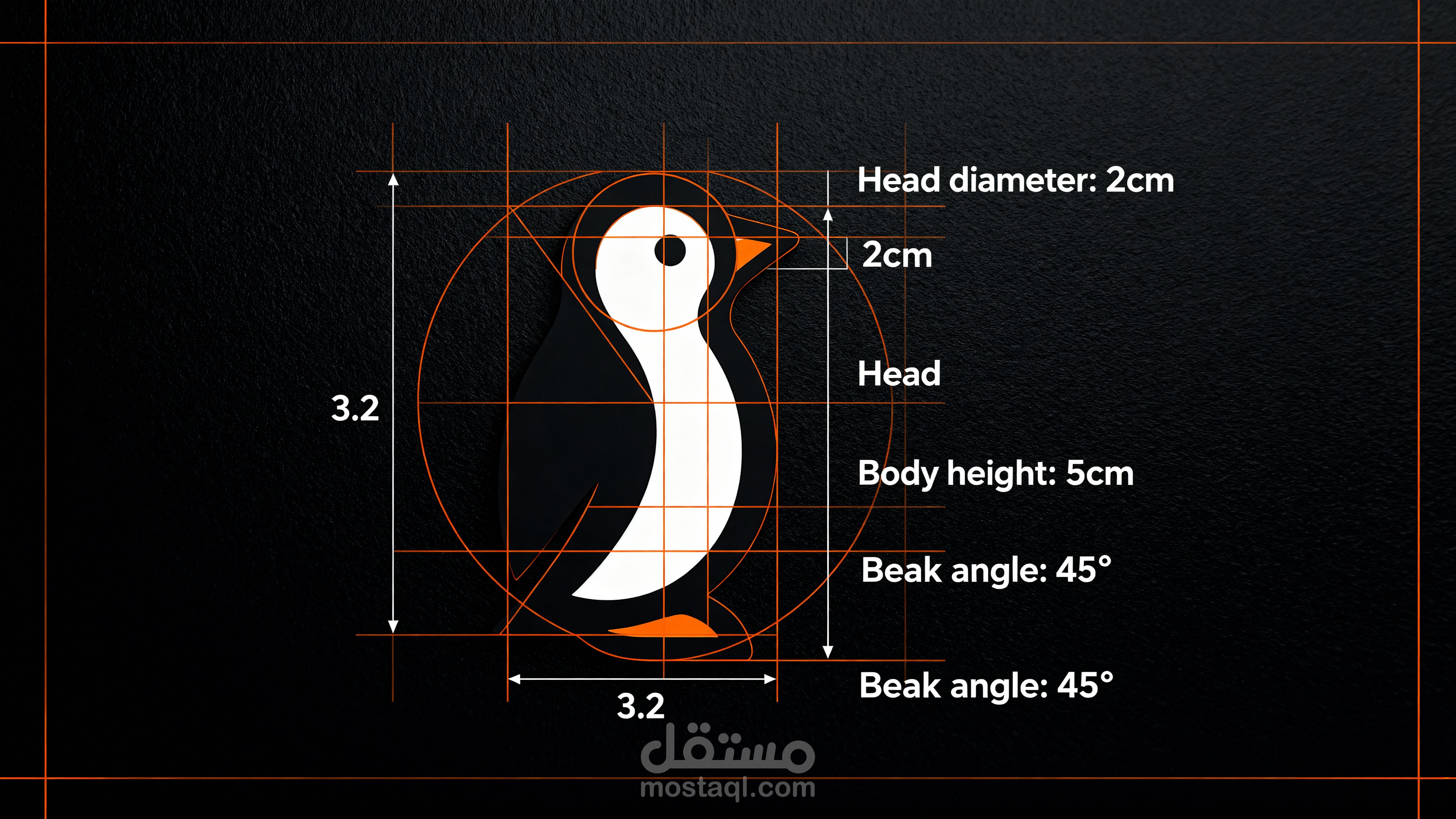 بتحتوي على مثلث برتقالي صغير كمنقار — عنصر الطاقة والتميّز في الهوية.