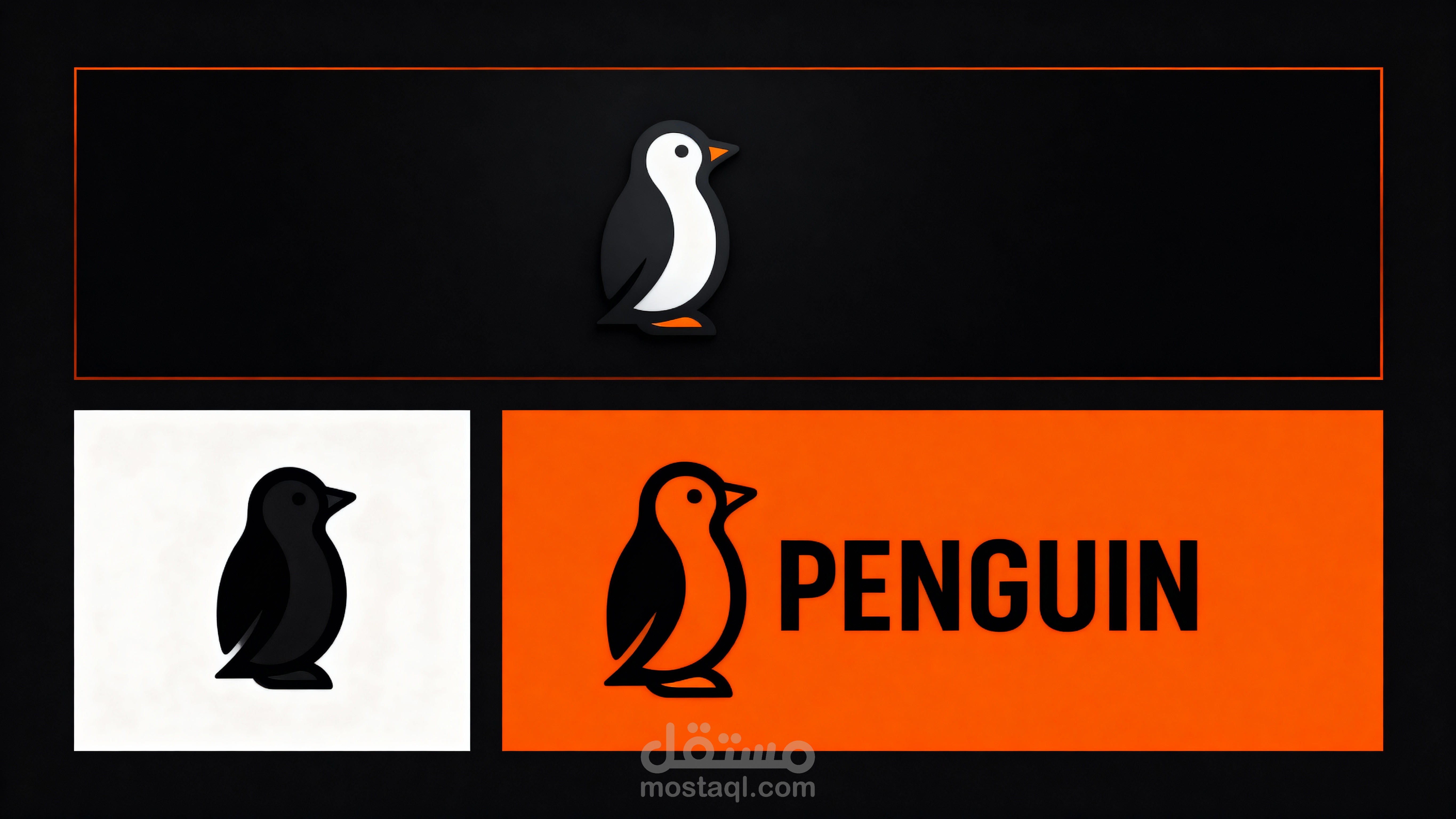 كلمة “PENGUIN” بخط هندسي بسيط وقوي.