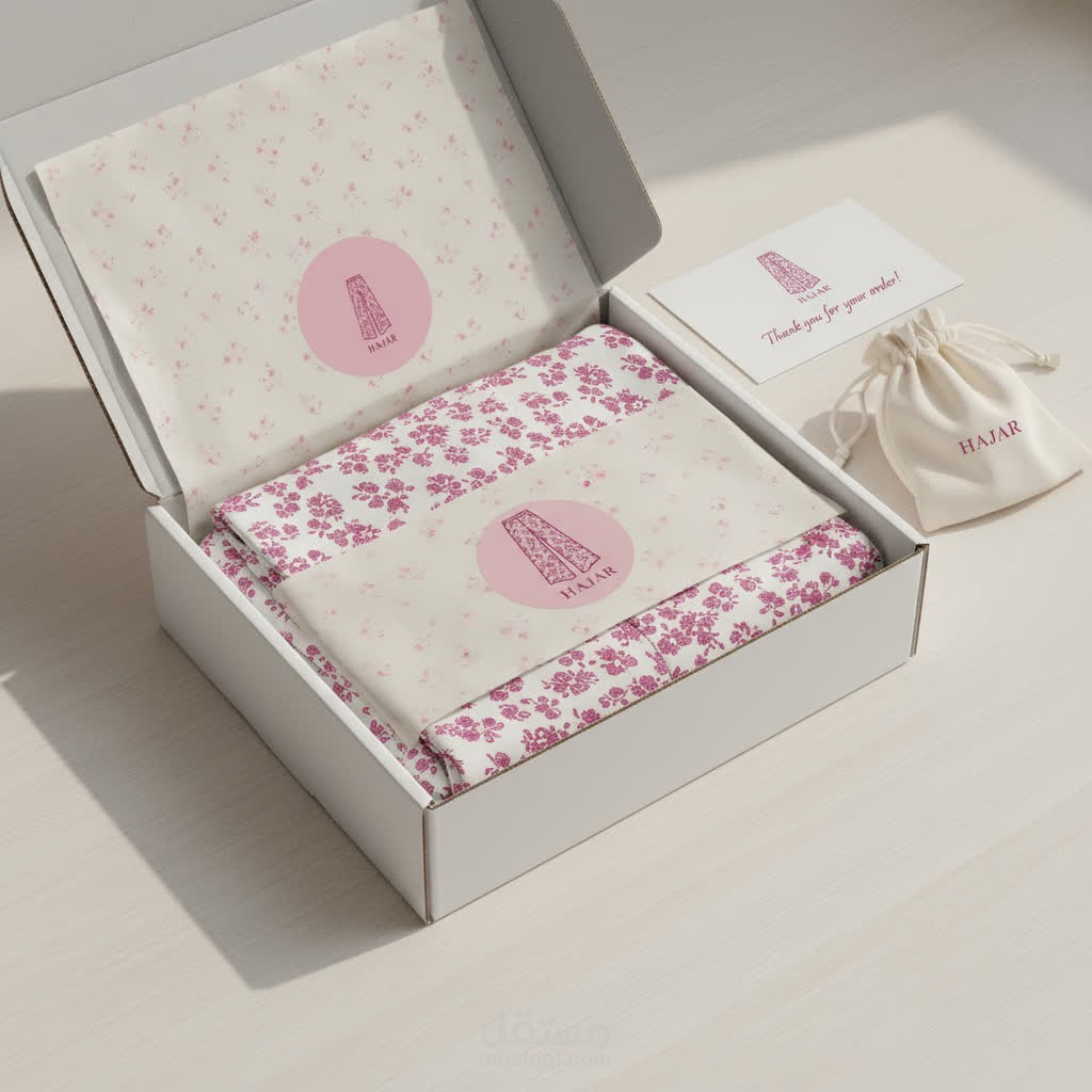 This project focused on developing a cohesive and feminine brand identity for HAJAR, a specialized fashion line for women's elegant, wide-leg fabric pants.