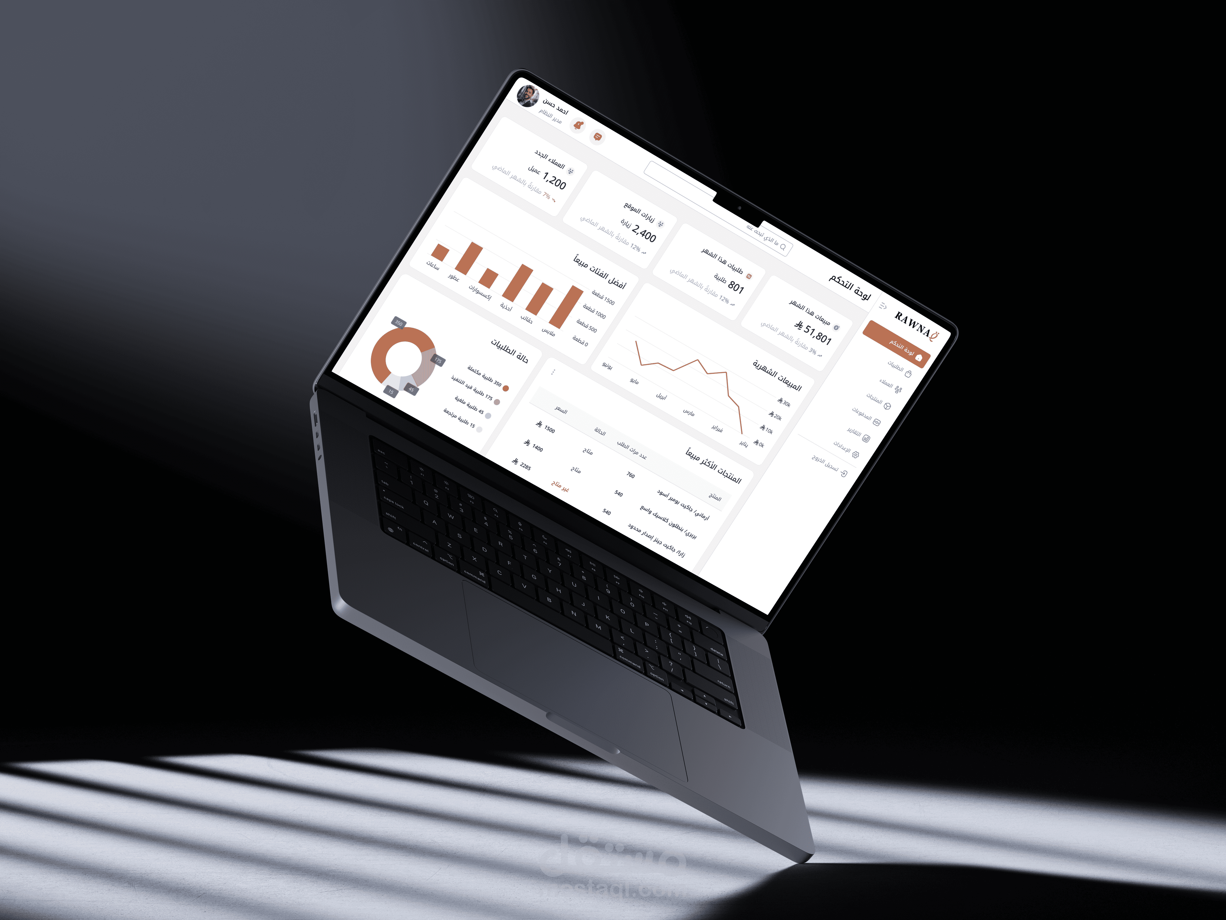 يقدّم تصميم رونق تجربة متجر إلكتروني عربي راقٍ يجمع بين الطابع الأصيل واللمسة العصرية في كل تفصيلة.
