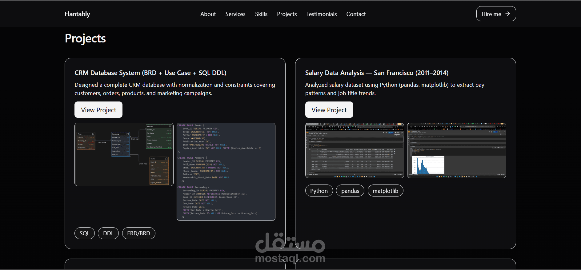 -تخطيط وتصميم: وضعت هيكل المعلومات (Hero, About, Services, Education & Experience, Skills, Projects, Contact) وصممت واجهات مبسطة باستخدام مبدأ الـ cards لسهولة القراءة.