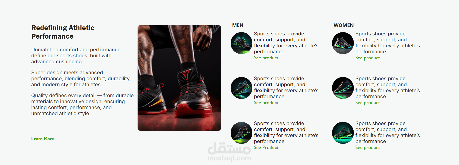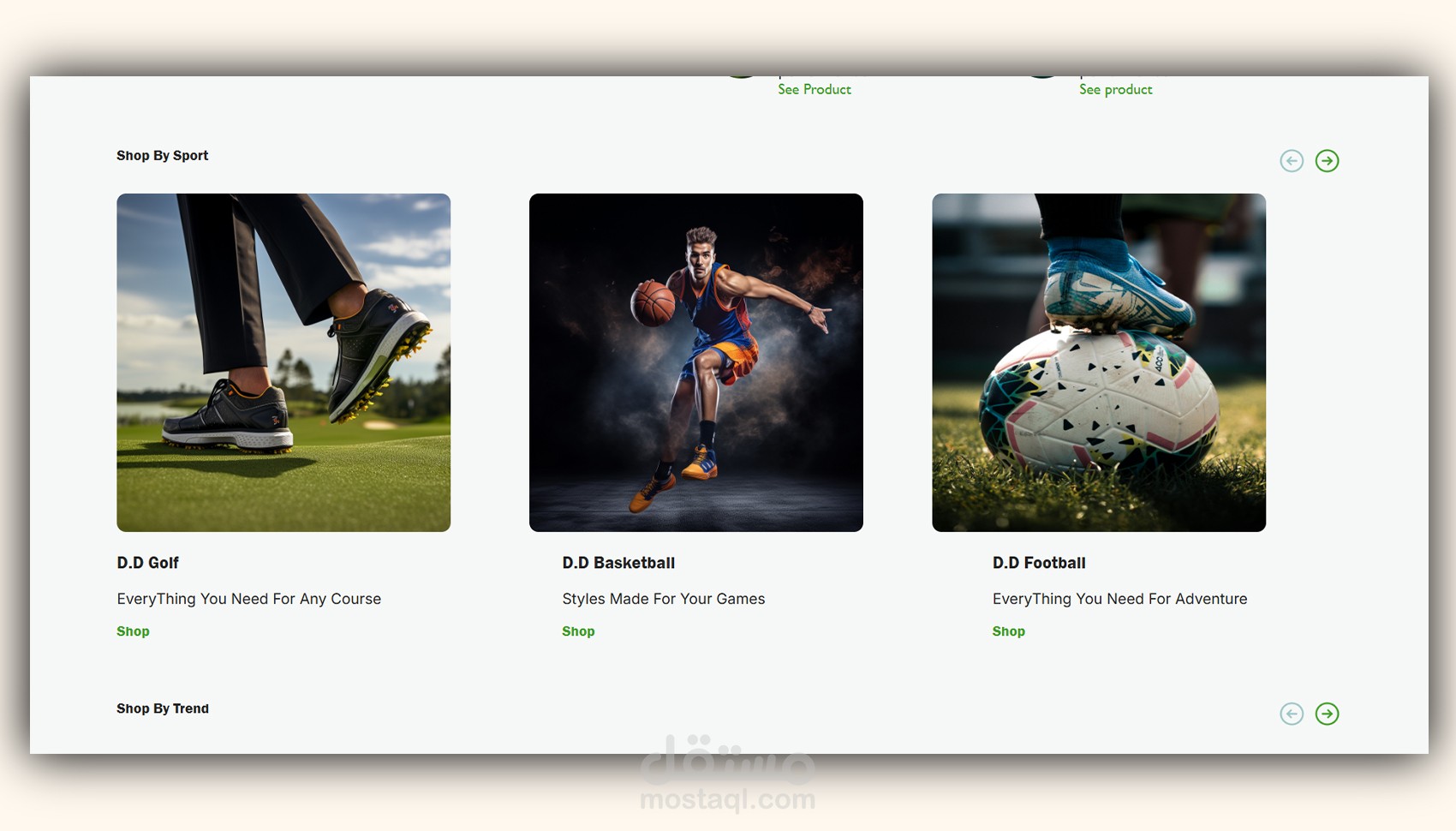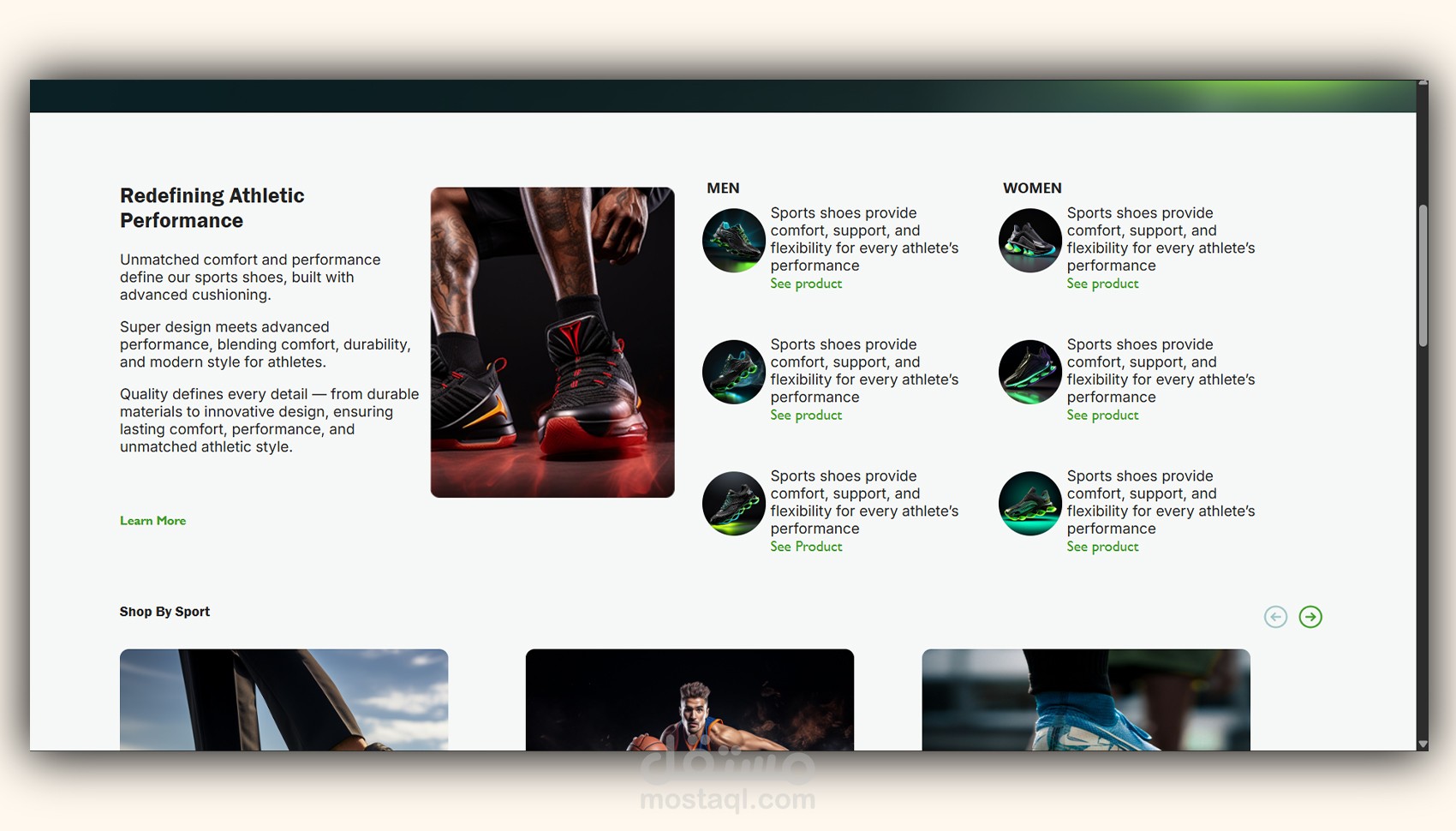 يتميز التصميم بالبساطة والتناسق والألوان المناسبة لطابع الرياضة، مع واجهة متجاوبة تعمل بسلاسة على مختلف الأجهزة (كمبيوتر، تابلت، وموبايل).