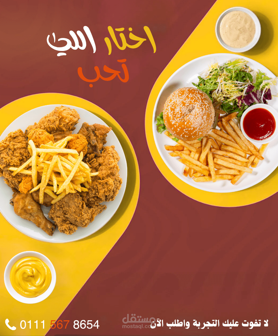 سأعمل على جعل محتوى مطعمك يبرز ويجذب الزبائن بفضل تصاميم مميزة وعصرية تلائم ذوق جمهورك المستهدف