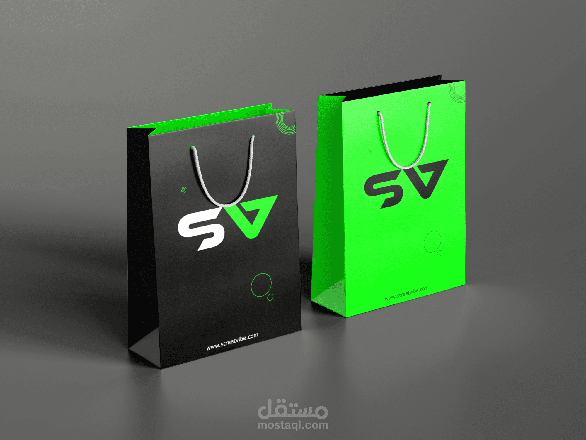 هوية بصرية متكاملة وقابلة للتطبيق العملي، تمنح بوتيك "STREET VIBE" مظهرًا احترافيًا، جريئًا، وعصريًا، يترسخ في ذهن الجمهور المستهدف ويضمن بروز العلامة في مشهد أزياء الشارع.