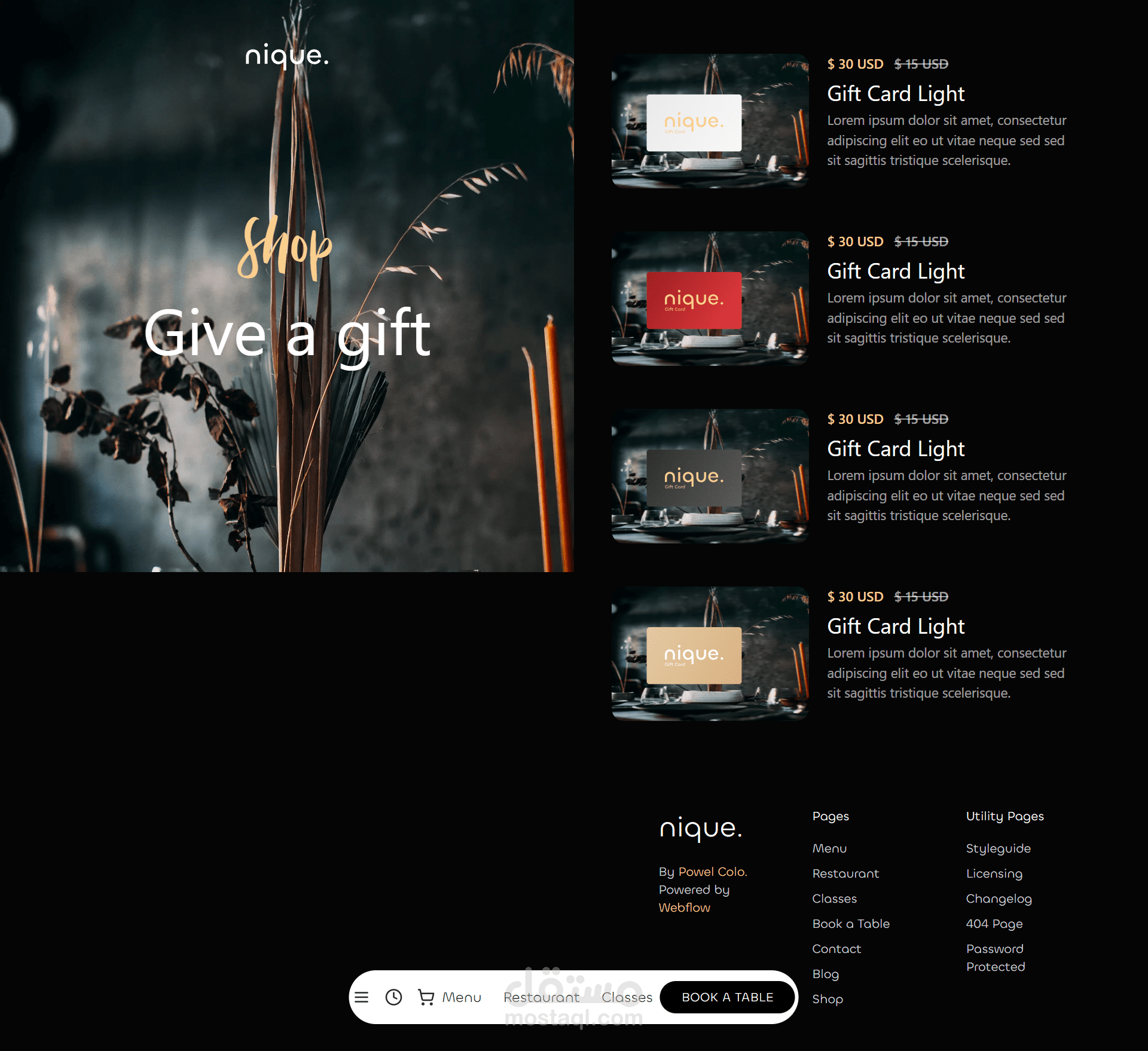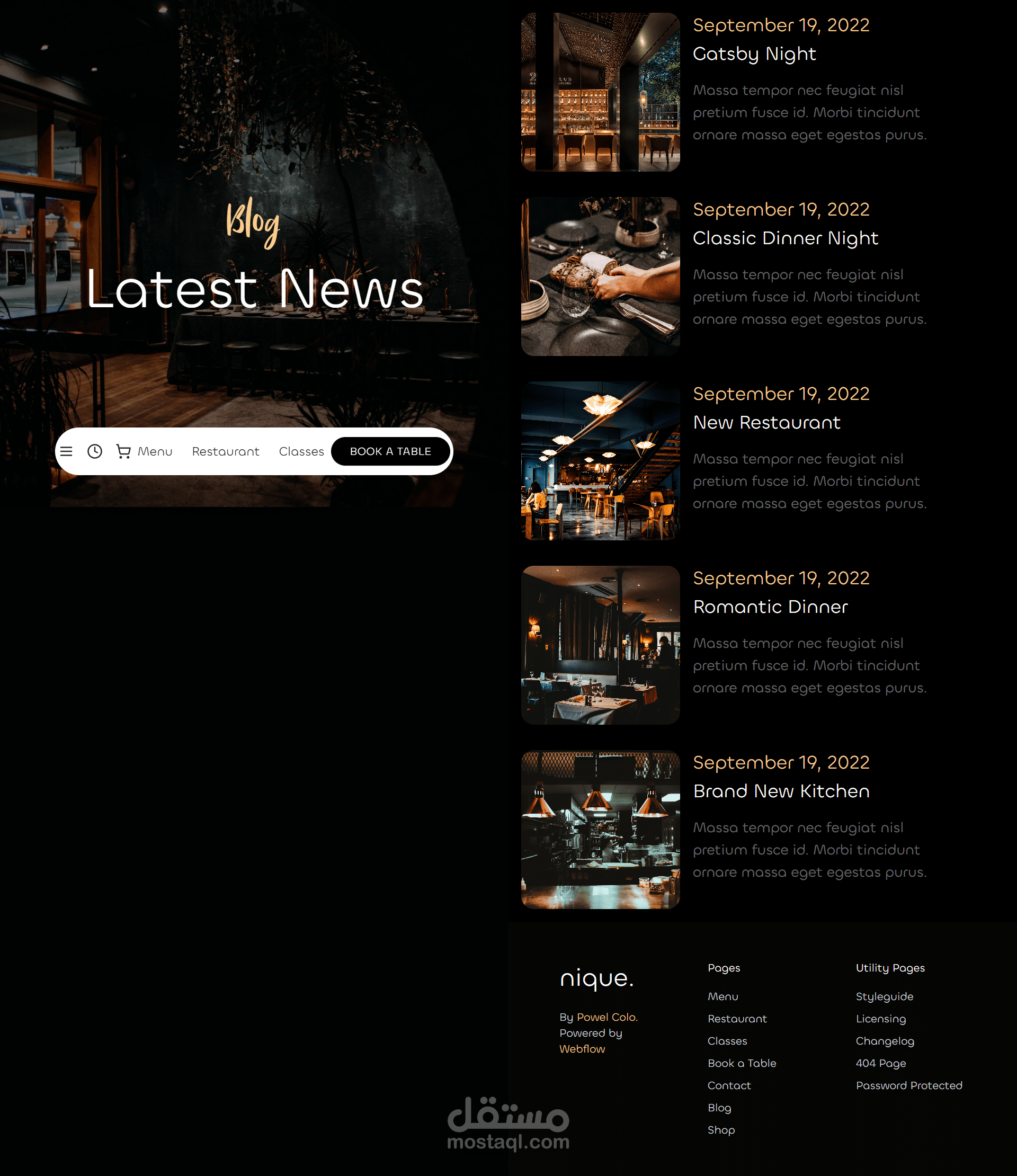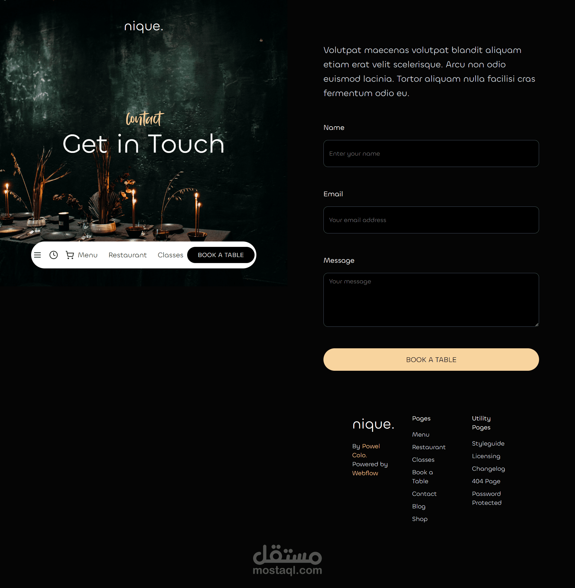 Modern Restaurant Website هو موقع مطعم أنيق ومصمم بعناية باستخدام React.js و Tailwind CSS مع تأثيرات حركة ناعمة لجعل تجربة المستخدم أكثر جاذبية وهدوءًا.