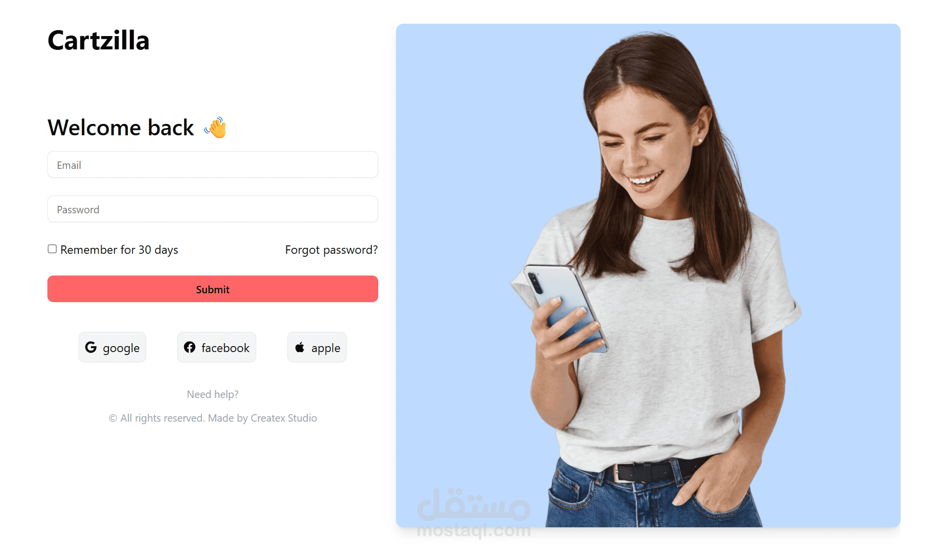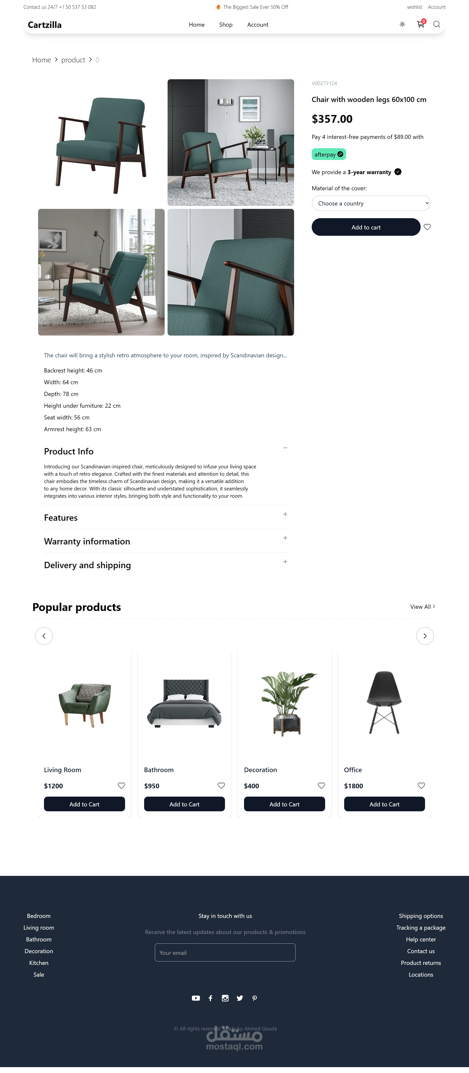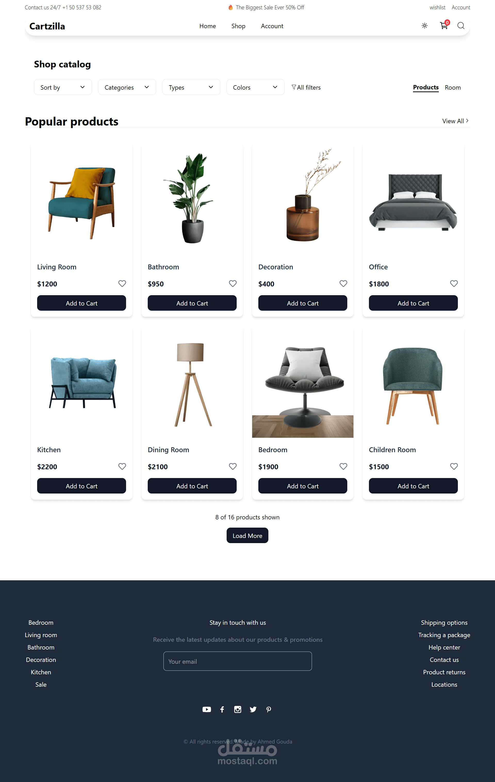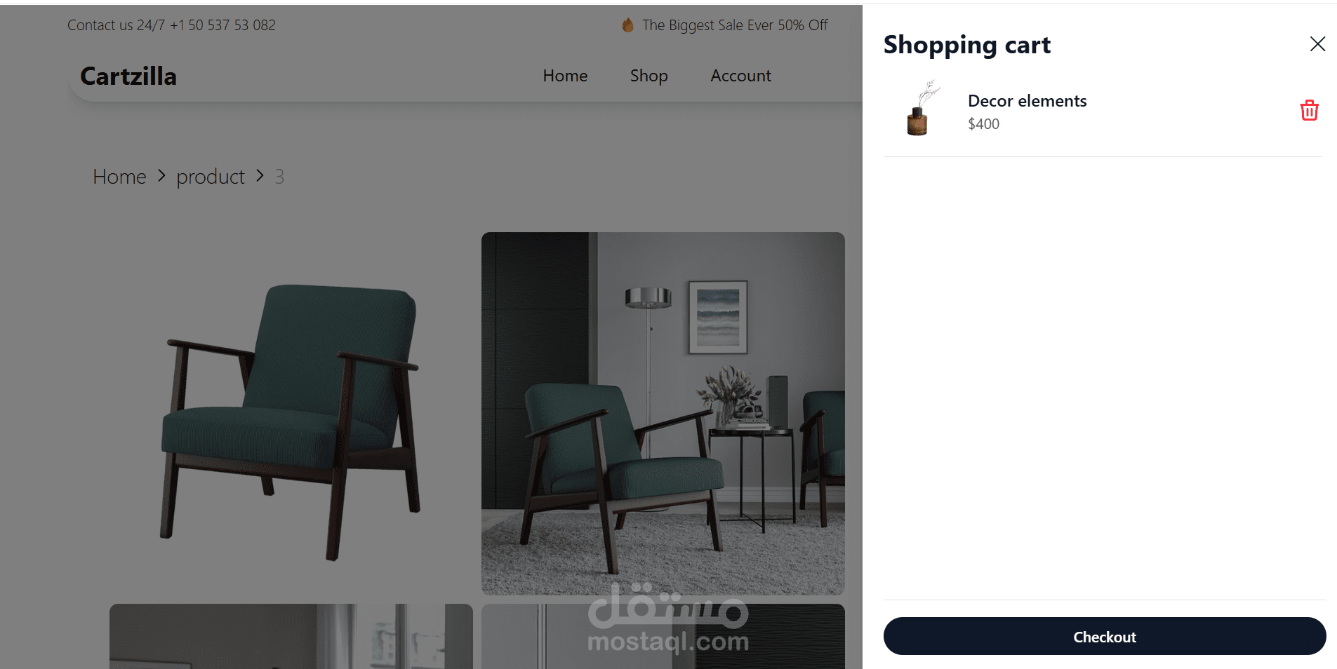Cartzial هو متجر إلكتروني عصري لبيع الأثاث تم بناؤه باستخدام React وTailwind CSS، يتميز بتصميم أنيق وتجربة مستخدم سلسة. يتيح للمستخدمين تصفح قطع الأثاث الحديثة، مشاهدة تفاصيل المنتجات، وإضافة المشتريات إلى السلة بسهولة.