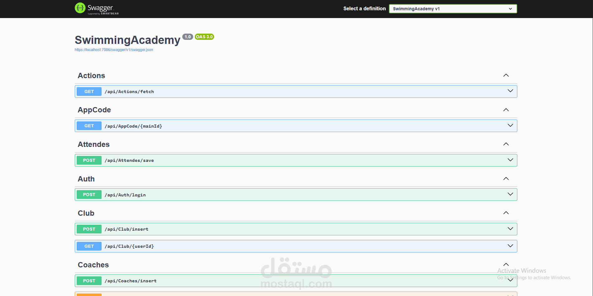 A professional ASP.NET Web API backend for managing a swimming academy with full database-first architecture. This system supports managing swimmers, schools, pre-teams, coaches, users, and detailed role-based actions. Built using stored procedures and SQL functions for maximum performance and integrity.