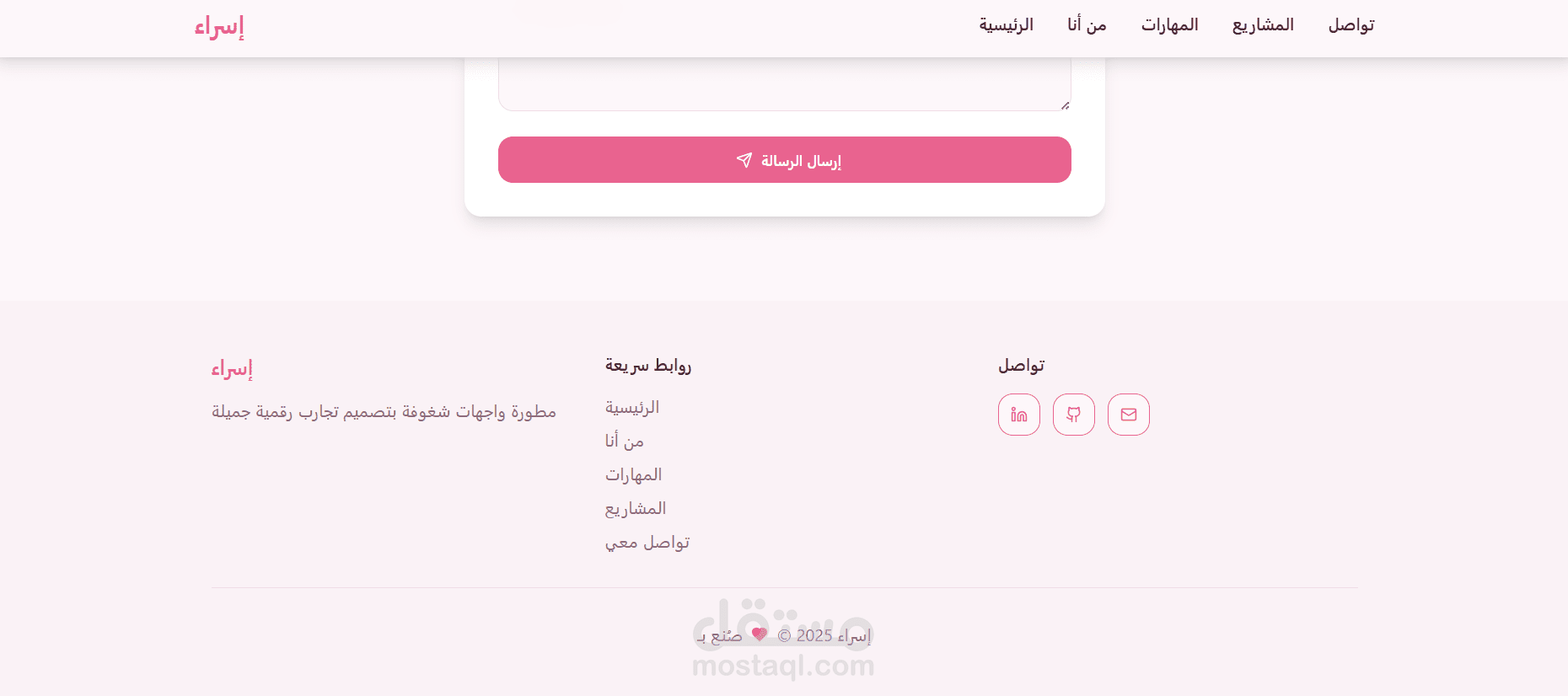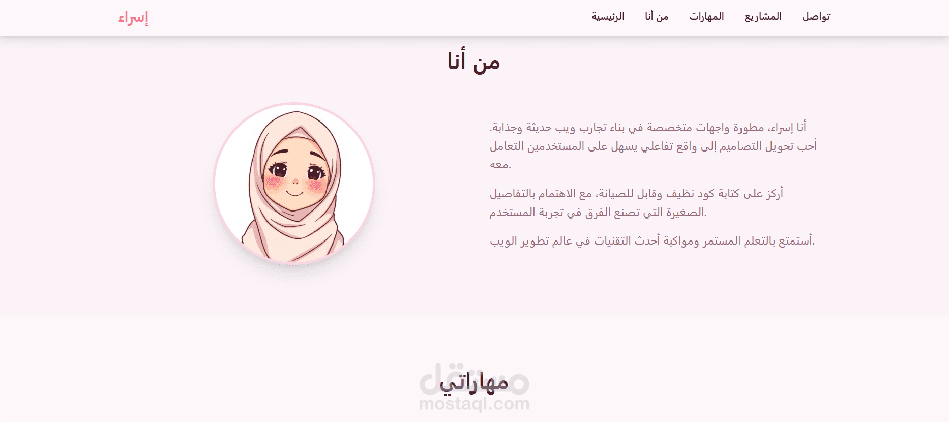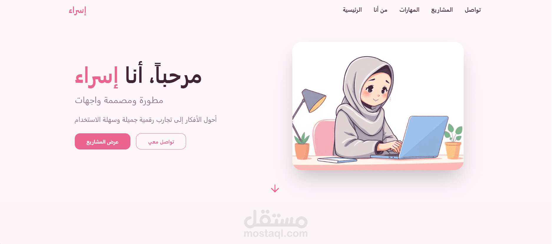 أنا إســراء، مطورة واجهات أمامية أقوم بتصميم صفحات ويب احترافية باستخدام HTML وCSS .