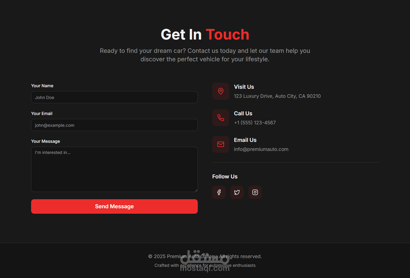 Contact: نموذج تواصل ومعلومات الاتصال مع روابط السوشيال ميديا.