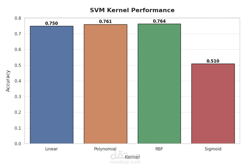 - نموذج SVM قادر على التعامل مع الفواصل المعقدة بين الفئات وتحسين أداء التصنيف في الحالات غير الخطية.