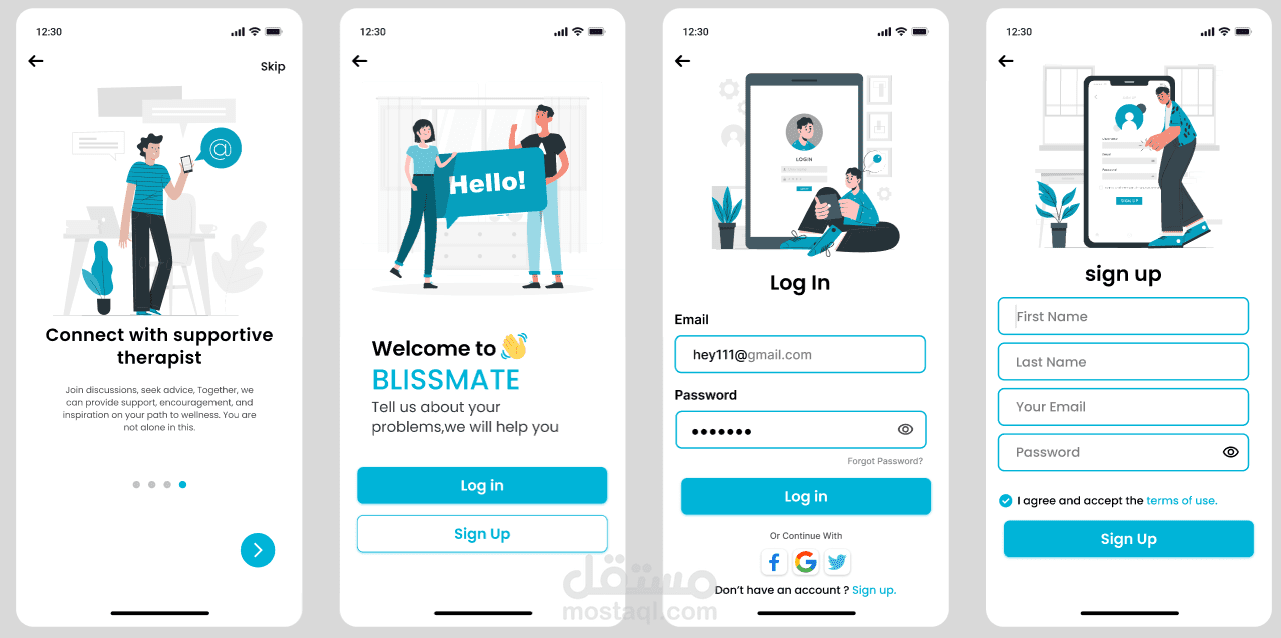 Bliss Mate تطبيق لدعم الصحة النفسية يساعد على إعطاء الأولوية للرعاية الذاتية وإدارة التوتر وتعزيز التوازن العاطفي.