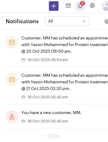 نقل بيانات المواعيد تلقائيًا من نظام الحجز إلى قاعدة بيانات CRM المخصصة في Zoho Creator، مما يضمن وصولاً موحدًا للبيانات وتبسيطًا لسير العمل التشغيلي.