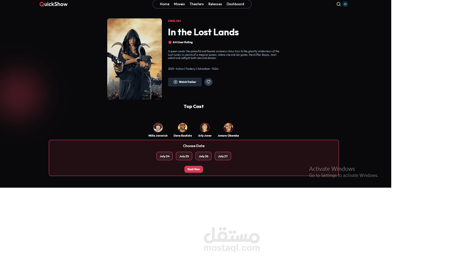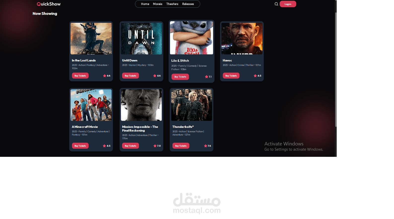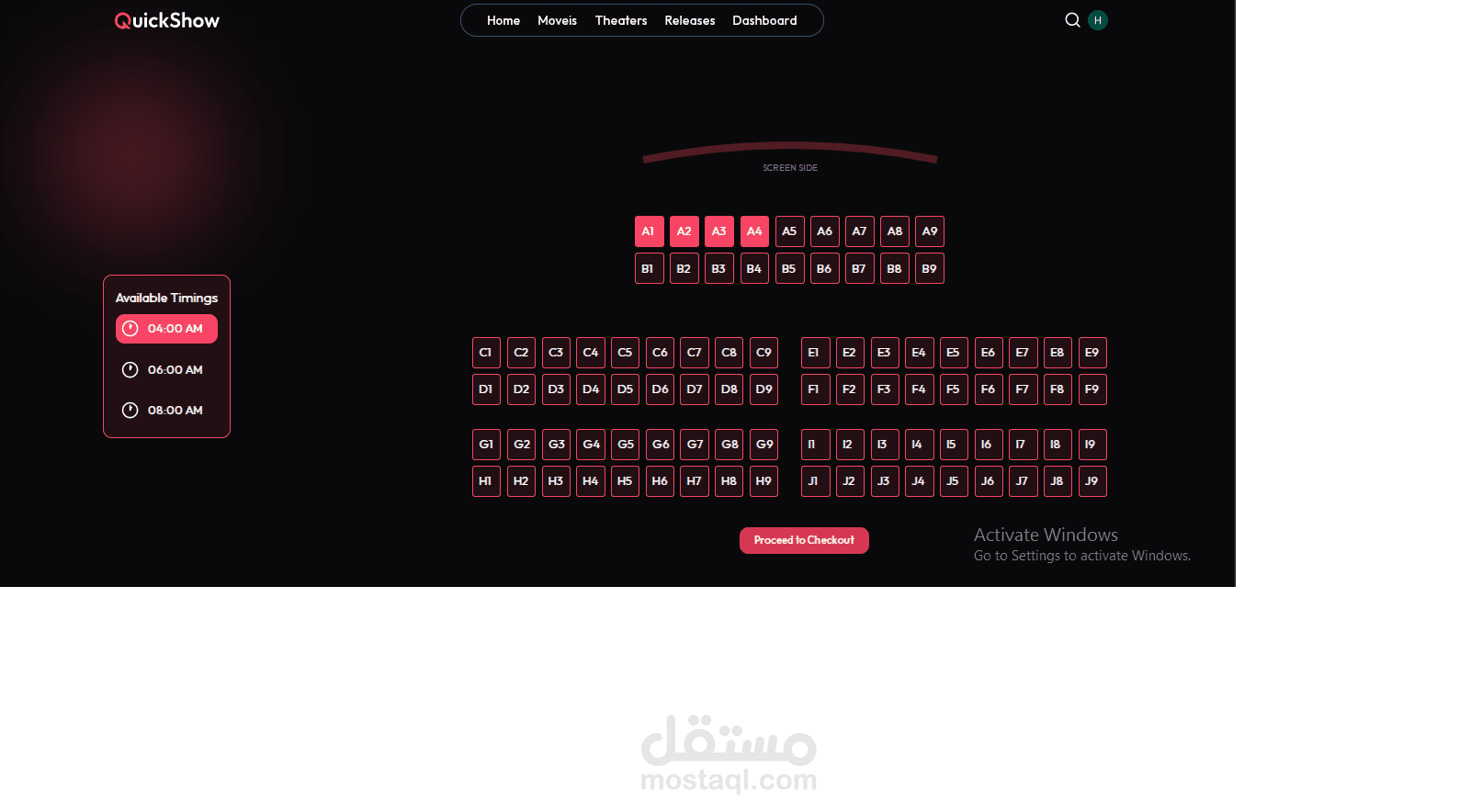 ادمن داش بورد لإضافة الأفلام و تحديد وقت و تاريخ العرض و سعر التذكرة وعدد الكراسي المتاحة