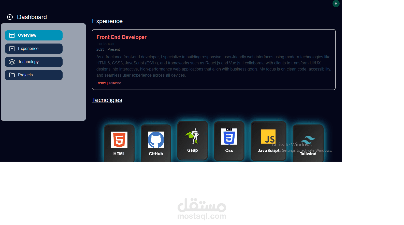 موقعي الشخصي الجديد، واللي يعتبر Fully Responsive وDynamic بالكامل — يعني أقدر أضيف أو أحذف أي محتوى بسهولة من غير ما أعدل في الكود.