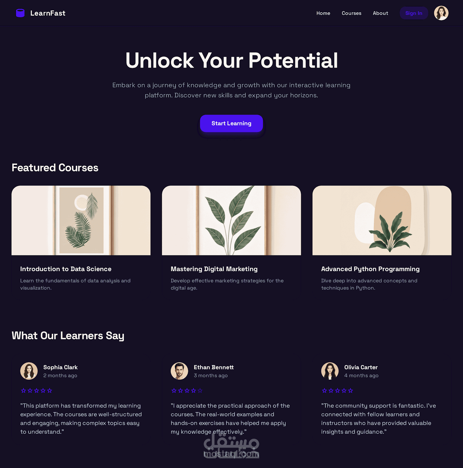 منصة تعليمية تفاعلية تمكّن الطلاب من الالتحاق بالدورات، مشاهدة الفيديوهات التعليمية، وتتبع تقدمهم الدراسي.